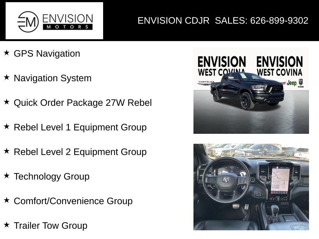 WE SPECIALIZE IN ALL CREDIT PROFILES! See what we can do for you! Call to find out (626) 899-9302.Recent Arrival! Certified. CARFAX One-Owner.115V Auxiliary Rear Power Outlet, 2-Door Passive Entry, Front Door Locks, 2nd Row In Floor Storage Bins, 4 Way Front Headrests, 4G LTE Wi-Fi Hot Spot, 9 Amplified Speakers w/Subwoofer, Accent Color Door Handles, Adaptive Cruise Control w/Stop & Go, Advanced Safety Group, Apple CarPlay, Auto High Beam Headlamp Control, Auto-Dimming Exterior Driver Mirror, Bed Utility Group, Black Front Bumper w/Black Plate, Black Premium Power Mirrors, Blind Spot & Cross Path Detection, Bucket Seats, Comfort/Convenience Group, Connected Travel & Traffic Services, Connectivity - US/Canada, Convex Wide-Angle Exterior Mirror Insert, Digital Rearview Mirror, Dome Dual LED Reading Lamp, Driver Seat Memory, Dual-Pane Panoramic Sunroof, Exterior Mirrors Courtesy Lamps, Exterior Mirrors w/Heating Element, Exterior Mirrors w/Memory, Exterior Mirrors w/Supplemental Signals, Floor Console, Foam Bottle Insert (Door Trim Panel), For Details, Visit DriveUconnect.com, For More Info, Call 800-643-2112, Front Door Accent Lighting, Front Seat Back Map Pockets, G/T Decal, G/T Package, Global Telematics Box Module (TBM), Google Android Auto, GPS Navigation, Grille Surround 2 Black Texture 3 Black, GT Interior Theme, harman/kardon 19 Speaker Premium Sound, HD Radio, Heads-Up Display, Heated Front Seats, Heated Second Row Seats, Heated Steering Wheel, Integrated Voice Command w/Bluetooth, Lane Keep Assist, Leather Wrapped Shift Knob, Leather-Wrapped Steering Wheel, Leather/Vinyl Bucket Seats, LED CHMSL Lamp, LED Dome Lamp w/On/Off Switch, Media Hub w/2 Charge Only USBs, Mirror Clearance/Running Lights, Mirror-Mounted Aux Reverse Lamps, MOPAR 4 Adjustable Cargo Tie-Down Hooks, MOPAR Bright Pedal Kit, MOPAR Cold Air Intake System, Navigation System, Night Edition, Off-Road Information Pages, Overhead LED Lamps, Parallel & Perp Park Assist w/Stop, ParkSense Front/Rear Park Assist w/Stop, Passive Cold End Exhaust, Pedestrian Emergency Braking, Performance Pages, Pick-Up Box Lighting, Power 2-Way Driver Lumbar Adjust, Power 4-Way Driver Lumbar Adjust, Power 4-Way Passenger Lumbar Adjust, Power 8-Way Driver & Passenger Seats, Power 8-Way Driver Seat, Power Adjustable Pedals, Power Adjustable Pedals w/Memory, Power-Folding Mirrors, Premium Overhead Console, Quick Order Package 27W Rebel, Radio: Uconnect 5 Nav w/12.0" Display, Radio/Driver Seat/Mirrors/Pedals Memory, Rain Sensitive Windshield Wipers, RAM Grille Badge - Black, Rear 60/40 Folding Seat, Rear Dome w/On/Off Switch Lamp, Rear Door Accent Lighting, Rear Power Sliding Window, Rear Underseat Compartment Storage, Rear Window Defroster, Rebel Level 1 Equipment Group, Rebel Level 2 Equipment Group, Remote Start System, Remote Tailgate Release, Security Alarm, SiriusXM Radio Service, SiriusXM w/360L, Steering Wheel Mounted Shift Control, Sun Visors w/Illuminated Vanity Mirrors, Surround View Camera System, Technology Group, Trailer Brake Control, Trailer Light Check, Trailer Reverse Steering Control, Trailer Tire Pressure Monitoring System, Trailer Tow Group, Under Seat Lighting, Universal Garage Door Opener, USB Host Flip, Ventilated Front Seats, Wheels: 18" x 8.0" Gloss Black, Wireless Charging Pad.Diamond Black Crystal Pearlcoat2024 Ram 1500 Rebel 4WD 8-Speed Automatic HEMI 5.7L V8 Multi Displacement VVT eTorqueFCA US LLC Certified Pre-Owned Details: * 125 Point Inspection * Warranty Deductible: $100 * Vehicles Up to 75,000 Miles and/or 5 Model Years. 24-Hour Towing & Roadside Assistance, Car Rental Allowance, CARFAX® Vehicle History ReportTM and an Introductory 3-month Subscription to SiriusXM® Satellite Radio & Certified Warranty Upgrades * Transferable Warranty * Roadside Assistance * Vehicle History * Powertrain Limited Warranty: 84 Month/100,000 Mile (whichever comes first) from original in-service date * Limited Warranty: 3 Month/3,000 Mile (wh