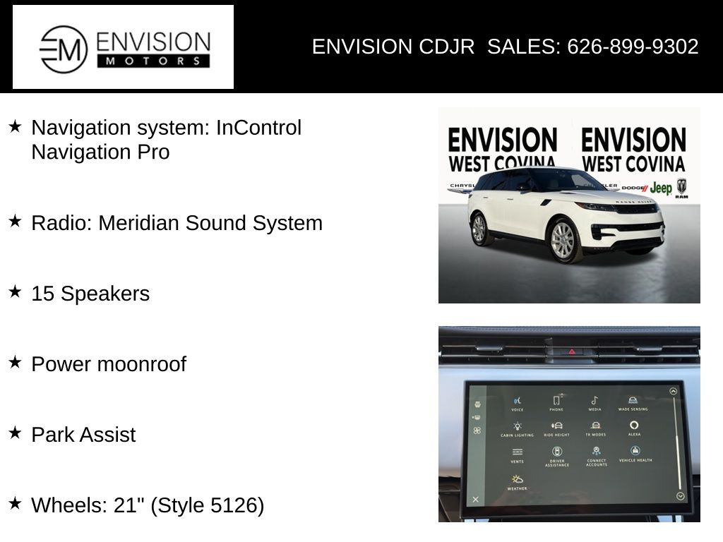 WE SPECIALIZE IN ALL CREDIT PROFILES! See what we can do for you! Call to find out (626) 899-9302.CARFAX One-Owner. Clean CARFAX.Odometer is 10769 miles below market average! 15 Speakers, Navigation system: InControl Navigation Pro, Park Assist, Power moonroof, Radio: Meridian Sound System, Wheels: 21" (Style 5126).Diamond Black2024 Land Rover Range Rover Sport SE 4WD 8-Speed Automatic 3.0L I6**********All Pricing and Advertised Prices for any/all vehicles offered for sale does not include dealer installed accessories which can be purchased for an additional cost.********** The Factory Rebates may not be available on this vehicle if you elect to take advantage of a Special Alternative APR or Special Lease program. Some Factory Rebates are California Resident specific and may vary for residents of other states. NO sales to Dealers, Brokers or Exporters. For out of state purchase, customers must be present to purchase. If shipping is required, dealership must facilitate; no exceptions. Please contact us for special Multi-Vehicle or Fleet pricing. Prices are plus government fees and taxes, any finance charges, $85 documentary fee, $29 electronic registration fee, any emission testing charge and $1.75 per new tire state tire fee. *** We make every effort to provide accurate information, but please verify before purchasing. Leasing & financing available on approved credit. Trade-ins accepted. Subject to prior sale.