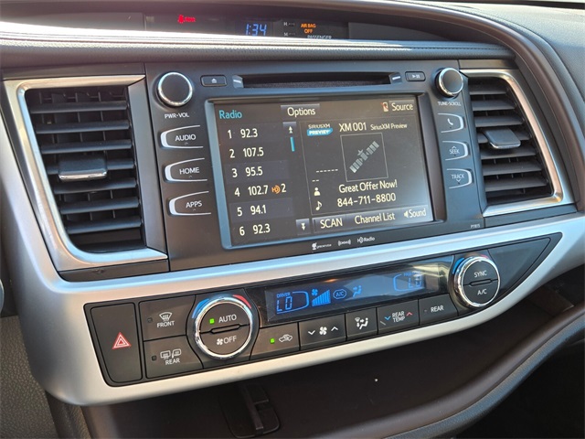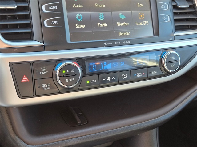 CARFAX One-Owner.Odometer is 3930 miles below market average!2019 Toyota Highlander FWD 8-Speed Automatic Electronic with ECT-i 3.5L V6If you don't drive here, you can't save here!Awards: * 2019 KBB.com Best Resale Value Awards * 2019 KBB.com 12 Best Family Cars * 2019 KBB.com Brand Image AwardsPrice may not include recon fee. 3.003 Axle Ratio, 3rd row seats: split-bench, 4-Wheel Disc Brakes, ABS brakes, Air Conditioning, Alloy wheels, Auto High-beam Headlights, Brake assist, Bumpers: body-color, CD player, Delay-off headlights, Driver door bin, Driver vanity mirror, Dual front impact airbags, Dual front side impact airbags, Electronic Stability Control, Exterior Parking Camera Rear, Four wheel independent suspension, Front anti-roll bar, Front Bucket Seats, Front Center Armrest, Front reading lights, Fully automatic headlights, Heated door mirrors, Illuminated entry, Knee airbag, Low tire pressure warning, Occupant sensing airbag, Outside temperature display, Overhead airbag, Overhead console, Panic alarm, Passenger door bin, Passenger vanity mirror, Power door mirrors, Power steering, Power windows, Rear air conditioning, Rear anti-roll bar, Rear reading lights, Rear window defroster, Rear window wiper, Reclining 3rd row seat, Remote keyless entry, Speed control, Speed-sensing steering, Split folding rear seat, Spoiler, Steering wheel mounted audio controls, Tachometer, Telescoping steering wheel, Tilt steering wheel, Traction control, Trip computer, Turn signal indicator mirrors, and Variably intermittent wipers.