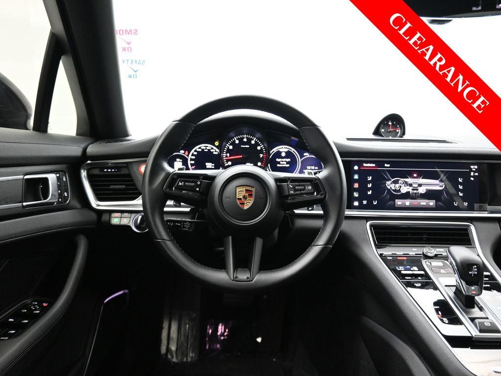 2023 Porsche Panamera Platinum Edition 1-Owner, No Accidents, Remaining Factory Warranty, just under 10,000 milesLuxury meets performance in this 2023 Porsche Panamera Platinum Edition, powered by a Twin-Turbocharged V6 paired with an 8-speed Porsche Doppelkupplung transmission and rear-wheel drive. This well-maintained, CARFAX 1-Owner sedan shows no accidents or damage, regular oil changes, and just under 10,000 miles. Para la version en espanol, vea abajo.Equipped with standout features like Surround View, 21" Panamera exclusive design wheels finished in Jet Black Metallic, retractable luggage compartment cover, and a premium Storage Package, this Platinum Edition delivers elegance and functionality. Enjoy 18 city / 24 highway MPG and a balance of sport-tuned handling and everyday comfort.Inside, the cabin is finished in Standard Black Leather with meticulous details including dual-zone climate control, ParkAssist front and rear sensors, ambient lighting, and Porsche Communication Management with touchscreen interface. The Panamera seats four passengers comfortably, offering impressive cargo versatility with split-folding rear seats.Advanced safety comes standard with side impact beams, adaptive airbags, and Porsche Traction Management (PTM) with active all-wheel drive control for stability and confidence in any condition. This models performance and refinement make it perfect for enthusiasts seeking grand touring comfort or daily commuting excitement.Renowned for its reliability and performance in the luxury sports sedan segment, the 2023 Panamera Platinum Edition continues Porsches legacy of precision engineering and award-winning craftsmanship.We take pride in offering carefully inspected vehicles backed by transparent history reports, easy financing options, and a stress-free buying process. Every car is professionally reconditioned and supported by our teams commitment to customer satisfaction and long-term trust.If this catches your eye, reach out now for more photos, a detailed walk-around video, or to book an in-dealership appointment. We're committed to making the process smooth, with expert advice on trade-ins and competitive offers to ease any worries.2023 Porsche Panamera Platinum Edition 1 propietario, sin accidentes, garantia de fabrica vigente, menos de 10,000 millasEl lujo se combina con el rendimiento en este Porsche Panamera Platinum Edition 2023, impulsado por un motor V6 biturbo con transmision Porsche Doppelkupplung de 8 velocidades y traccion trasera. Este sedan, con historial CARFAX de un solo propietario, sin accidentes y con cambios de aceite regulares, tiene menos de 10,000 millas.Incluye caracteristicas destacadas como camara Surround View, rines exclusivos de 21" Panamera en negro metalico Jet Black, cubierta retractil para el area de equipaje y paquete de almacenamiento premium. Ofrece un rendimiento de 18 MPG en ciudad y 24 en carretera, equilibrando conduccion deportiva con confort diario.El interior en piel negra estandar refleja la atencion al detalle de Porsche, con control de clima de doble zona, sensores ParkAssist delantero y trasero, iluminacion ambiental y sistema Porsche Communication Management con pantalla tactil. Ofrece espacio para cuatro pasajeros y versatilidad en el area de carga gracias a los asientos traseros abatibles.La seguridad avanzada incluye vigas de impacto lateral, bolsas de aire adaptativas y sistema Porsche Traction Management (PTM) con control activo de traccion total para mayor estabilidad y confianza en cualquier camino. Es ideal para quienes buscan una experiencia de manejo emocionante con el confort de un gran turismo.Reconocido por su fiabilidad y desempeno dentro del segmento de sedanes deportivos de lujo, el Panamera Platinum Edition 2023 mantiene la excelencia y la precision de ingenieria caracteristica de Porsche.Nos enorgullece ofrecer vehiculos minuciosamente inspeccionados, con historial transparente, financiamiento accesib