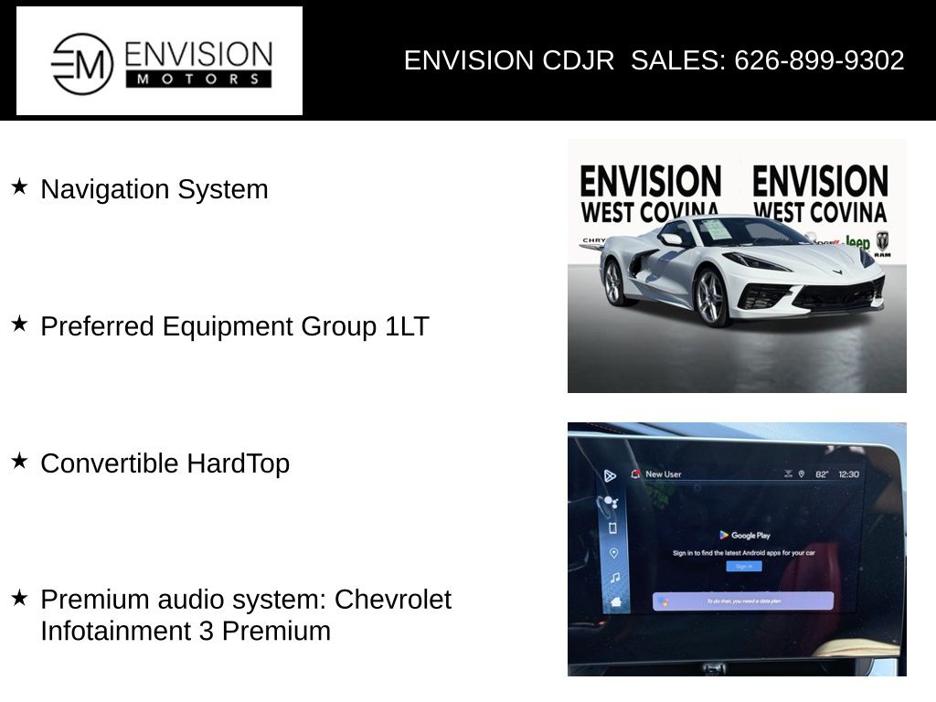 WE SPECIALIZE IN ALL CREDIT PROFILES! See what we can do for you! Call to find out (626) 899-9302.CARFAX One-Owner. Clean CARFAX.Convertible HardTop, Navigation System, Preferred Equipment Group 1LT, Premium audio system: Chevrolet Infotainment 3 Premium.Arctic White2024 Chevrolet Corvette Stingray RWD 8-Speed Dual Clutch 6.2L V8**********All Pricing and Advertised Prices for any/all vehicles offered for sale does not include dealer installed accessories which can be purchased for an additional cost.********** The Factory Rebates may not be available on this vehicle if you elect to take advantage of a Special Alternative APR or Special Lease program. Some Factory Rebates are California Resident specific and may vary for residents of other states. NO sales to Dealers, Brokers or Exporters. For out of state purchase, customers must be present to purchase. If shipping is required, dealership must facilitate; no exceptions. Please contact us for special Multi-Vehicle or Fleet pricing. Prices are plus government fees and taxes, any finance charges, $85 documentary fee, $29 electronic registration fee, any emission testing charge and $1.75 per new tire state tire fee. *** We make every effort to provide accurate information, but please verify before purchasing. Leasing & financing available on approved credit. Trade-ins accepted. Subject to prior sale.Awards: * Car and Driver 10 BestCar and Driver, January 2017.