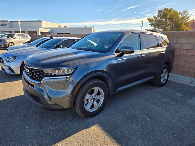 Recent Arrival!CARFAX One-Owner.Priced below KBB Fair Purchase Price!Gravity Gray 2023 Kia Sorento LX AWD 8-Speed Automatic 2.5L I4 DGI DOHC 16V LEV3-ULEV70 191hp AWD.If you don't drive here, you can't save here!Price may not include recon fee. AWD, 3rd row seats: split-bench, 4-Wheel Disc Brakes, 4.081 Axle Ratio, 6 Speakers, 7.0J x 17" Alloy Wheels, ABS brakes, Air Conditioning, Alloy wheels, AM/FM radio, Apple CarPlay & Android Auto, Auto High-beam Headlights, Brake assist, Bumpers: body-color, Carpet Floor Mats, Cloth Seat Trim, Delay-off headlights, Driver door bin, Driver vanity mirror, Dual front impact airbags, Dual front side impact airbags, Electronic Stability Control, Exterior Parking Camera Rear, Four wheel independent suspension, Front anti-roll bar, Front Bucket Seats, Front Center Armrest, Front reading lights, Fully automatic headlights, Heated door mirrors, Illuminated entry, Knee airbag, Low tire pressure warning, Occupant sensing airbag, Outside temperature display, Overhead airbag, Overhead console, Panic alarm, Passenger door bin, Passenger vanity mirror, Power door mirrors, Power steering, Power windows, Radio data system, Radio: AM/FM Audio System, Rear anti-roll bar, Rear reading lights, Rear seat center armrest, Rear window defroster, Rear window wiper, Remote keyless entry, Security system, Speed control, Speed-sensing steering, Split folding rear seat, Spoiler, Steering wheel mounted audio controls, Tachometer, Telescoping steering wheel, Tilt steering wheel, Traction control, Trip computer, Turn signal indicator mirrors, and Variably intermittent wipers.