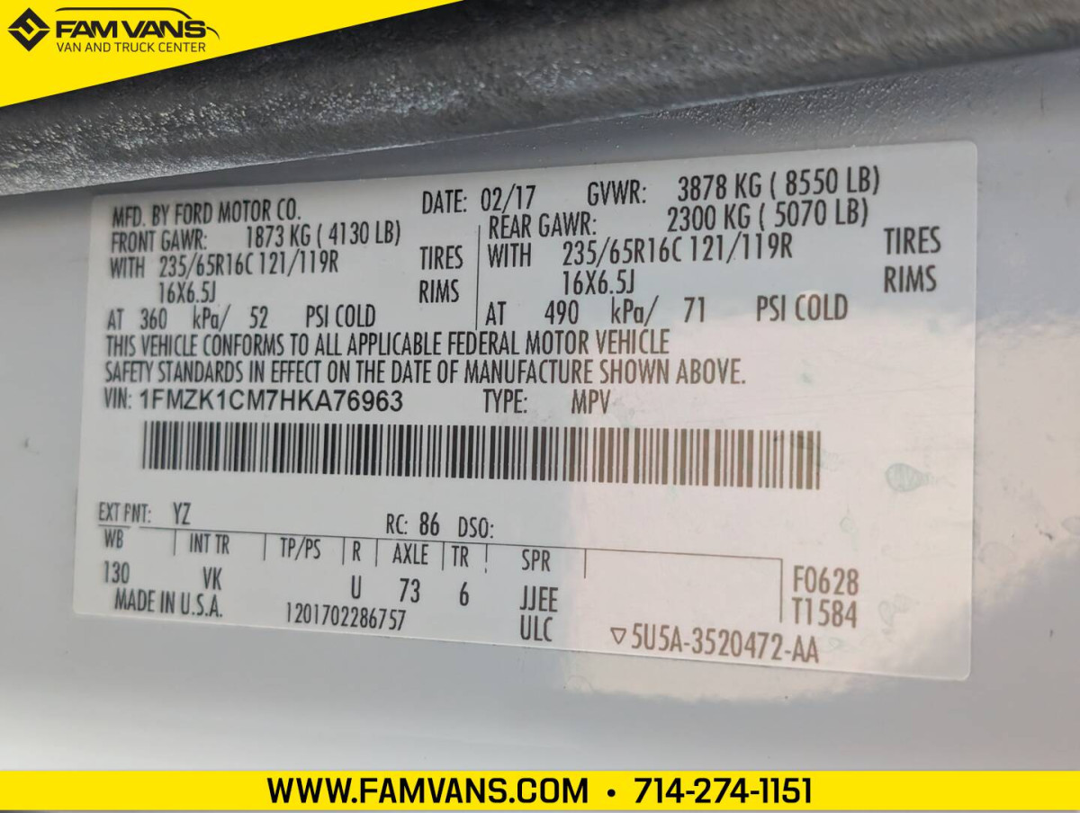 Here at FAM Vans we have over 350 vans and trucks in stock at any given time, plus we get fresh inventory every month. We can modify any vehicle to fit your needs or find the right one that fits your budget! Full Parts and Service departments. -130-in WB -GVWR: 8,550 LBS -Includes backup camera -Dimensions: 217.8 L x 98.7 H -Wheelchair lift in rear