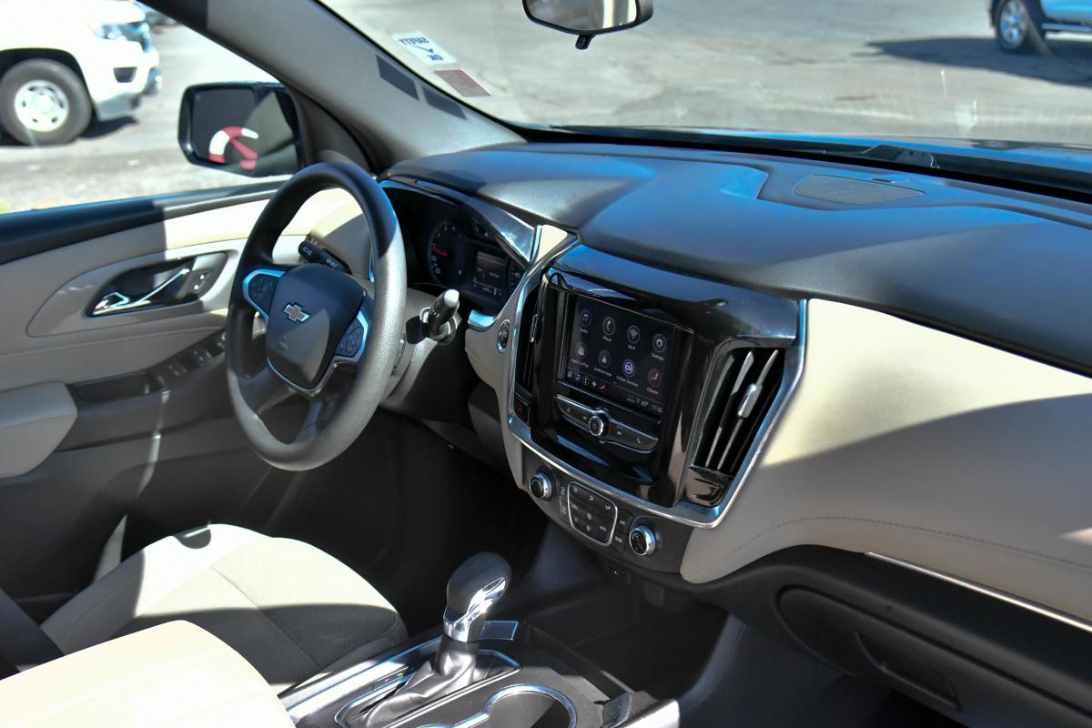 Delivers 27 Highway MPG and 18 City MPG! This Chevrolet Traverse boasts a Gas V6 3.6L/217 engine powering this Automatic transmission. WHEELS, 18 (45.7 CM) BRIGHT SILVER PAINTED ALUMINUM (STD), TRANSMISSION, 9-SPEED AUTOMATIC (STD), TIRES, P255/65R18 ALL-SEASON BLACKWALL (STD).*This Chevrolet Traverse Comes Equipped with These Options *LPO, INTERIOR PROTECTION PACKAGE includes (VAV) first and second row all-weather floor mats, LPO, (VKN) third row all-weather floor mats, LPO and (VLI) all-weather cargo mat, LPO, CARGO PACKAGE includes (VRS) retractable cargo shade, LPO and (W2D) vertical cargo net, LPO, LICENSE PLATE FRONT MOUNTING PACKAGE (will be forced on orders with ship-to states that require a front license plate) , SEATS, FRONT BUCKET (STD), NORTHSKY BLUE METALLIC, LS PREFERRED EQUIPMENT GROUP Includes Standard Equipment, LPO, CARGO SHADE, RETRACTABLE, LPO, CARGO NET, VERTICAL, LPO, ALL-WEATHER FLOOR MATS, THIRD ROW, LPO, ALL-WEATHER FLOOR MATS, FIRST AND SECOND ROW.