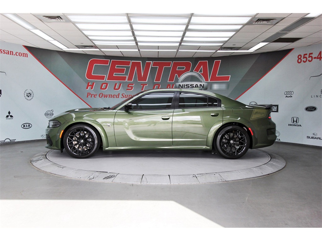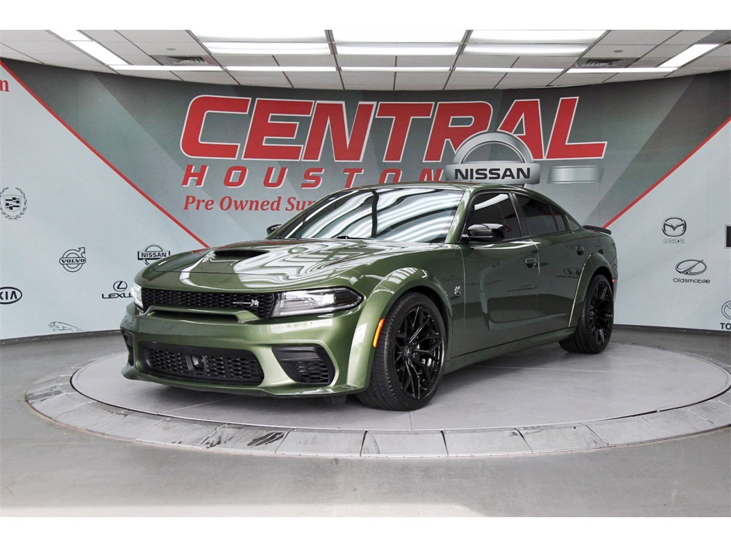 Central Houston Nissan is proud to present you with another True Market Priced Pre-Owned Vehicle. This 2023 Dodge Charger R/T Scat Pack Widebody is loaded with the following Factory Options: Black Cloth Navigation & Travel Group (1-Yr SiriusXM Guardian Trial, 2-Piece Shark Fin Antenna, 4G LTE Wi-Fi Hot Spot, 5-Year SiriusXM Traffic Service, 5-Year SiriusXM Travel Link Service, 8.4" Touchscreen Display, Apple CarPlay, Compass Gauge, For Details, Visit DriveUconnect.com, Google Android Auto, GPS Antenna Input, GPS Navigation, HD Radio, Integrated Center Stack Radio, Integrated Voice Command w/Bluetooth, Media Hub (2 USB, AUX), Radio: Uconnect 4C Nav w/8.4" Display, SiriusXM Traffic Plus, SiriusXM Travel Link, and USB Host Flip), Plus Group (Auto Adjust In Reverse Exterior Mirrors, Auto-Dimming Exterior Driver Mirror, Black-Edged Premium Floormats, Blind Spot & Cross Path Detection, Blind Spot Memory/Power/Heat Mirror, Driver & Passenger Lower LED Lamps, Exterior Mirrors Courtesy Lamps, Exterior Mirrors w/Heating Element, Front Overhead LED Lighting, Heated Front Seats, Power 2-Way Driver Lumbar Adjust, Power 2-Way Passenger Lumbar Adjust, Power Front Driver/Passenger Seats, Power Tilt/Telescope Steering Column, Premium-Stitched Dash Panel, Radio/Driver Seat/Mirrors Memory, Rear Armrest w/Cupholder Seat, Scat Pack Logo Nappa/Alcantara Seat, and Ventilated Front Seats), Quick Order Package 21V Scat Pack Widebody (All Speed Traction Control, Body Color Fender Flares, Brembo 6-Pot Fixed Front Caliper Brakes, Flat-Bottom Steering Wheel, Performance Shift Indicator, Wheels: 20" x 11" Carbon Black Aluminum, and Widebody Competition Suspension), Swinger Special Edition (Aluminum Interior Bezel w/Wood Look, Basil Green IP/Console/Door Stitching, Gold School Bee Fender Badge, Gold School Scat Pack/Bee Decklid Badge, Gold School Scat Pack/Bee Grille Badge, Nappa Alcantara Seat Trim w/Green Stitch, Rhombi 2-Pc Wheel Center Cap, Satin Black Dodge Tail Lamp Badge, Swinger Exterior Vinyl Graphics, Unique IP Badge, and Wheels: 20" x 11.0" Gold School), Technology Group (Adaptive Cruise Control w/Stop, Advanced Brake Assist, Auto High Beam Headlamp Control, Full Speed FWD Collision Warn Plus, Lane Departure Warning Plus, and Rain Sensitive Windshield Wipers), Widebody Package, Black Cloth, 4-Wheel Disc Brakes, 6 Speakers, ABS brakes, Adaptive Damping Suspension (DISC), Air Conditioning, Alloy wheels, AM/FM radio: SiriusXM, Anti-whiplash front head restraints, Apple CarPlay/Android Auto, Auto-dimming Rear-View mirror, Automatic temperature control, Brake assist, Bumpers: body-color, Cloth Performance Seats w/Heat, Compass, Delay-off headlights, Driver door bin, Driver vanity mirror, Dual front impact airbags, Dual front side impact airbags, Electronic Stability Control, Emergency communication system: SiriusXM Guardian, Four wheel independent suspension, Front anti-roll bar, Front Bucket Seats, Front Center Armrest, Front dual zone A/C, Front fog lights, Front reading lights, Fully automatic headlights, Garage door transmitter: HomeLink, Heated door mirrors, Heated front seats, Heated steering wheel, Illuminated entry, Knee airbag, Leather Shift Knob, Low tire pressure warning, Occupant sensing airbag, Outside temperature display, Overhead airbag, Overhead console, Panic alarm, ParkView Rear Back-Up Camera, Passenger door bin, Passenger vanity mirror, Power door mirrors, Power driver seat, Power steering, Power windows, Radio: Uconnect 4C w/8.4" Display, Rear anti-roll bar, Rear reading lights, Rear seat center armrest, Rear window defroster, Remote keyless entry, Security system, Speed control, Speed-Sensitive Wipers, Split folding rear seat, Spoiler, Sport steering wheel, Steering wheel mounted audio controls, Tachometer, Telescoping steering wheel, Tilt steering wheel, Traction control, Trip computer, Variably intermittent wipers, and Wheels: 20" x 9" Lo Gloss Granite Crystal!!Central Houston Nissan is more than just your typical car dealer
