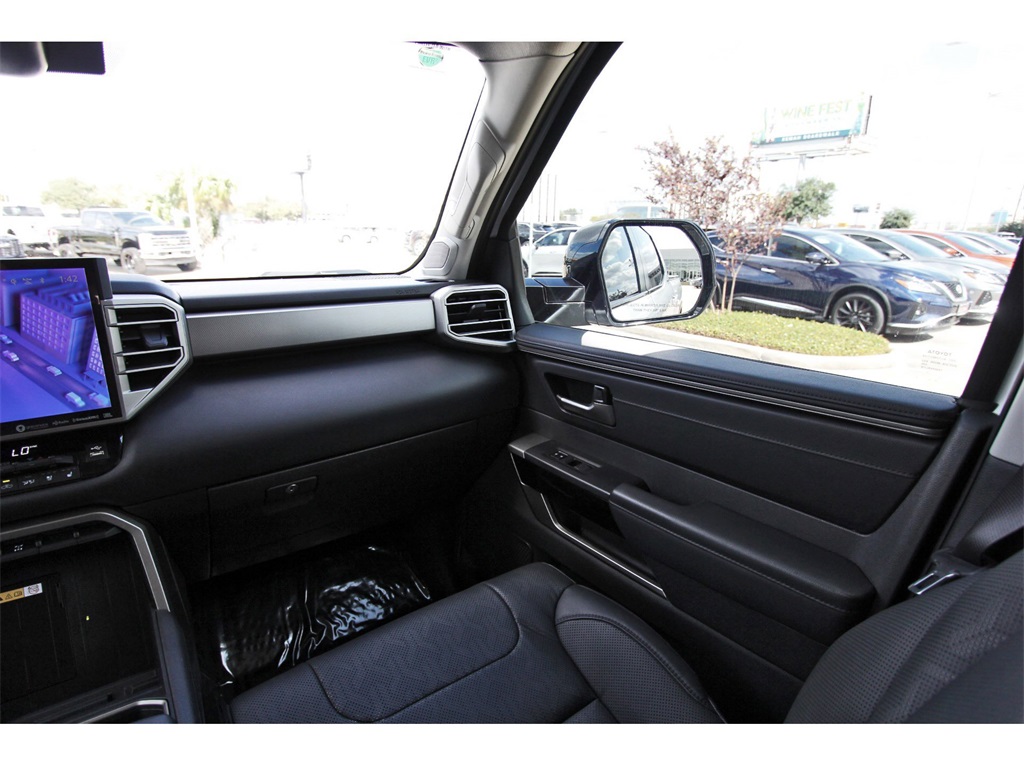 Central Houston Nissan is proud to present you with another True Market Priced Pre-Owned Vehicle. This 2024 Toyota Tundra Hybrid Limited is loaded with the following Factory Options: 3.4L V6 3.4L V6, 3.31 Axle Ratio, 4-Wheel Disc Brakes, ABS brakes, Air Conditioning, Alloy wheels, AM/FM radio: SiriusXM, Apple CarPlay/Android Auto, Auto High-beam Headlights, Auto-dimming door mirrors, Auto-dimming Rear-View mirror, Automatic temperature control, Brake assist, Bumpers: body-color, Delay-off headlights, Driver door bin, Driver vanity mirror, Dual front impact airbags, Dual front side impact airbags, Electronic Stability Control, Emergency communication system: Safety Connect (10-year trial), Exterior Parking Camera Rear, Front anti-roll bar, Front Bucket Seats, Front Center Armrest, Front dual zone A/C, Front fog lights, Front reading lights, Front wheel independent suspension, Fully automatic headlights, Garage door transmitter: HomeLink, Heated & Ventilated Front Bucket Seats, Heated door mirrors, Heated front seats, Heated steering wheel, Illuminated entry, Knee airbag, Leather Shift Knob, Low tire pressure warning, Memory seat, Navigation System, Occupant sensing airbag, Outside temperature display, Overhead airbag, Overhead console, Panic alarm, Passenger door bin, Passenger vanity mirror, Power door mirrors, Power driver seat, Power passenger seat, Power steering, Power windows, Radio data system, Radio: Premium Audio w/JBL, Rear reading lights, Rear seat center armrest, Rear step bumper, Rear window defroster, Remote keyless entry, Security system, Speed control, Speed-sensing steering, Split folding rear seat, Steering wheel mounted audio controls, Tachometer, Telescoping steering wheel, Tilt steering wheel, Traction control, Trip computer, Turn signal indicator mirrors, Variably intermittent wipers, Ventilated front seats, and Voltmeter!!Central Houston Nissan is more than just your typical car dealership. When our customers visit us, our goal is to provide quality vehicles, exceptional service and a friendly atmosphere. Our staff has been trained to create ease during your purchase or service experience and we are always making sure you get everything you want and deserve out of your visit. Our vision and mission is an employee-centered and customer-focused environment. Vehicles may be subject to prep package and market adjustment. When you buy from Central Houston Nissan, we'll make it the best car buying experience you've ever had. When you purchase a New Nissan or a qualifying Pre-Owned vehicle from Central Houston Nissan, you are automatically enrolled into our Central Houston Nissan Central Care Program at no cost to you. You can’t beat that! Vehicles may be subject to prep package and market adjustment. Stop by 2901 S Loop W, Houston, Texas 77054 today!!!