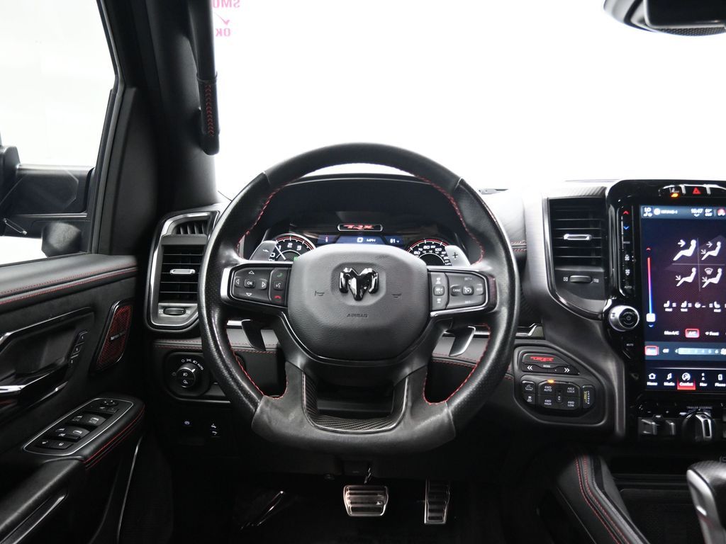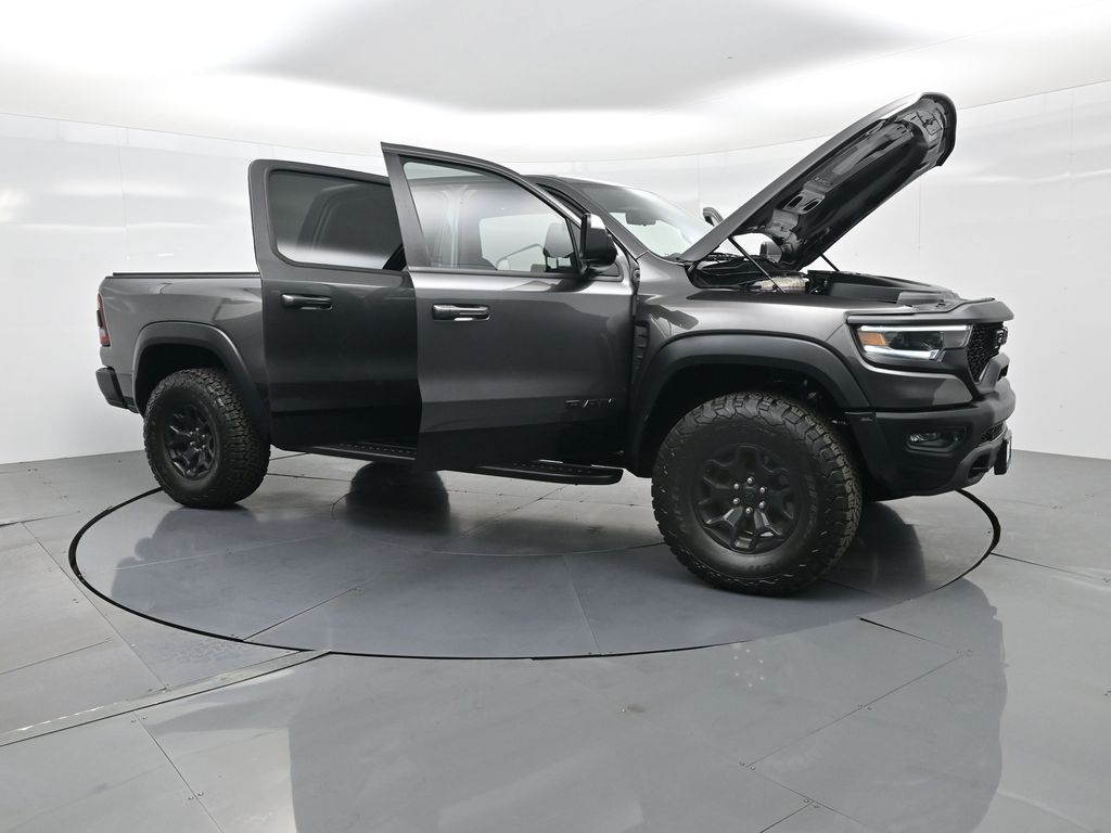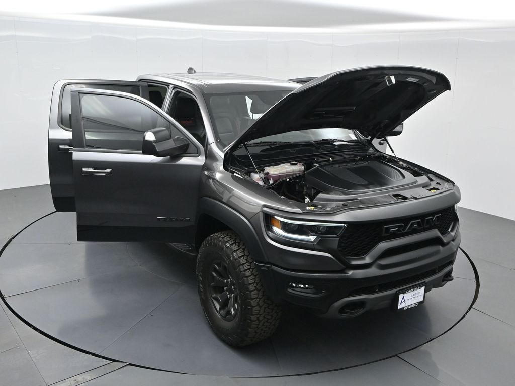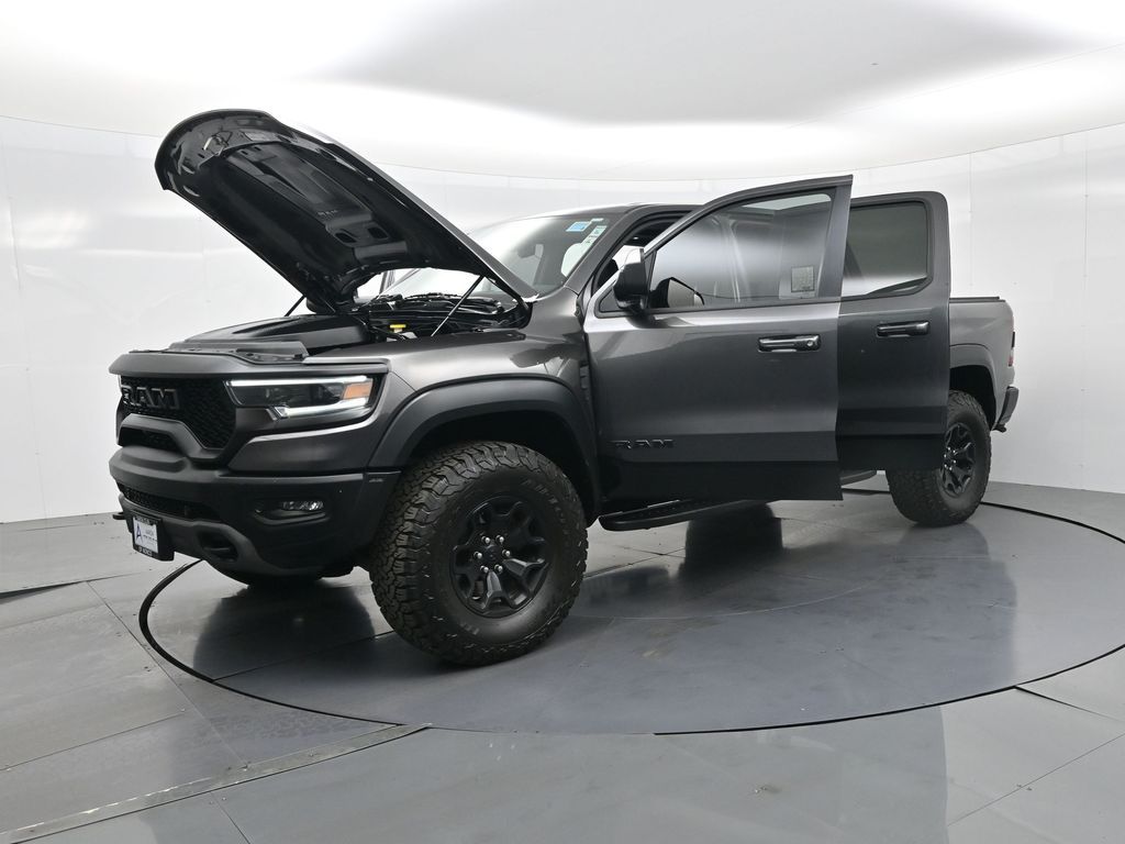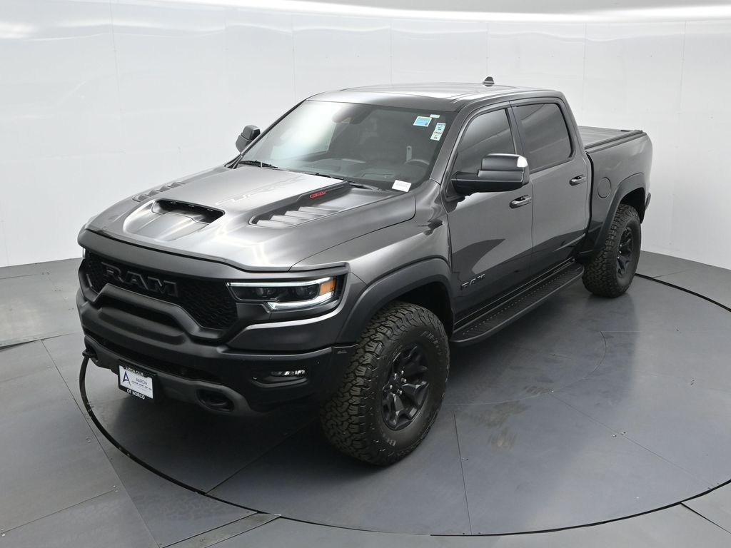 2022 Ram 1500 TRX TRX Level 2 Equipment Group, 4x4 Supercharged 6.2L HEMI V8, No Accidents Reported, Regular Oil Changes, just under 56,000 miles.This 2022 Ram 1500 TRX delivers 702 horsepower from its Supercharged 6.2L HEMI V8 paired with an 8-speed automatic and advanced 4x4 system. Outfitted with the TRX Level 2 Equipment Group, Carbon Fiber Package, Advanced Safety Group, Bed Utility Group, Trailer Tow Group, and dual-pane panoramic sunroof, it combines extreme off-road performance with luxury and technology. Para la version en espanol, vea abajo.Inside, the TRX cabin offers premium black performance seating with heated and ventilated front and rear seats, a 12-inch Uconnect touchscreen with navigation, and a Harman Kardon 19-speaker audio system. Safety and driver-assist features include adaptive cruise control, lane-keep assist, blind-spot and trailer detection, and a surround-view camera system for confident maneuvering on or off the road.With just under 56,000 miles, this TRX shows regular oil changes and a recent alignment performed per CARFAX, ensuring its been properly maintained. Its 4x4 drivetrain, Bilstein adaptive shocks, and functional hood scoop make it ideal for enthusiasts who want supercharged power and off-road control in one package.The TRXs 10 MPG city / 14 MPG highway rating reflects its high-performance design. It remains one of the most powerful and capable full-size trucks ever built, boasting a factory-rated towing capacity up to 8,100 pounds when properly equipped.Renowned for its reliability and performance in its segment, the 2022 Ram 1500 TRX continues to stand out as an award-winning powerhouse among high-performance trucks.Our dealership stands behind every vehicle with a commitment to transparency, quality, and value. Each pre-owned vehicle undergoes a detailed inspection and reconditioning process to ensure it meets high standards. We offer easy financing, fair trade-in evaluations, and a no-pressure experienceyour satisfaction drives our mission.Ready to see this vehicle up close? Contact us today to schedule a no-obligation test drive or virtual tour, and let's discuss how we can tailor financing to fit your needs. Our team is dedicated to addressing any concerns and guiding you every step of the way.2022 Ram 1500 TRX Paquete TRX Level 2 Equipment, 4x4 motor HEMI V8 supercargado 6.2L, sin accidentes reportados, cambios de aceite regulares y con poco menos de 56,000 millas.La 2022 Ram 1500 TRX ofrece 702 caballos de fuerza con su motor HEMI V8 supercargado de 6.2L, transmision automatica de 8 velocidades y traccion 4x4 avanzada. Equipada con los paquetes TRX Level 2, Carbon Fiber, Advanced Safety, Bed Utility, Trailer Tow y techo panoramico doble, combina lujo y tecnologia con un desempeno todoterreno extremo.El interior presenta asientos deportivos TRX en color negro con calefaccion y ventilacion delantera y trasera, pantalla tactil Uconnect de 12 pulgadas con navegacion y sistema de audio Harman Kardon de 19 bocinas. Incluye control de crucero adaptativo, asistente de carril, monitoreo de punto ciego con deteccion de remolque y camaras de vision 360 para maxima confianza al conducir.Con poco menos de 56,000 millas, muestra historial de mantenimiento regular y alineacion reciente segun CARFAX. Su traccion 4x4, amortiguadores Bilstein y cofre funcional hacen de esta camioneta la opcion ideal para quienes buscan potencia y control en cualquier terreno.Su consumo de 10 MPG en ciudad y 14 en carretera refleja su enfoque de alto rendimiento, ademas de una capacidad de remolque de hasta 8,100 libras cuando esta correctamente equipada.Reconocida por su confiabilidad y desempeno dentro de su segmento, la Ram 1500 TRX 2022 sigue destacando como una de las camionetas mas potentes del mercado.Nos enorgullece ofrecer transparencia, calidad y valor en cada vehiculo. Todos nuestros autos son minuciosamente inspeccionados y reacondicionados. Ofrecemos financiamiento flexible
