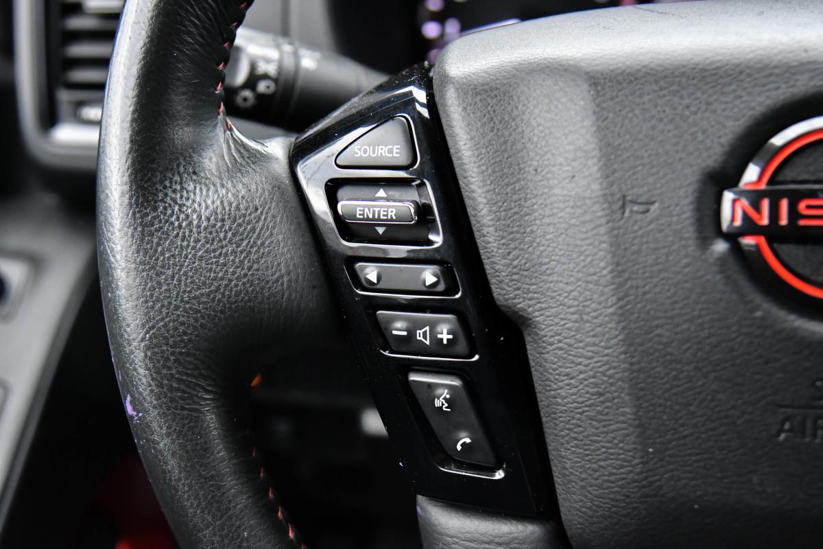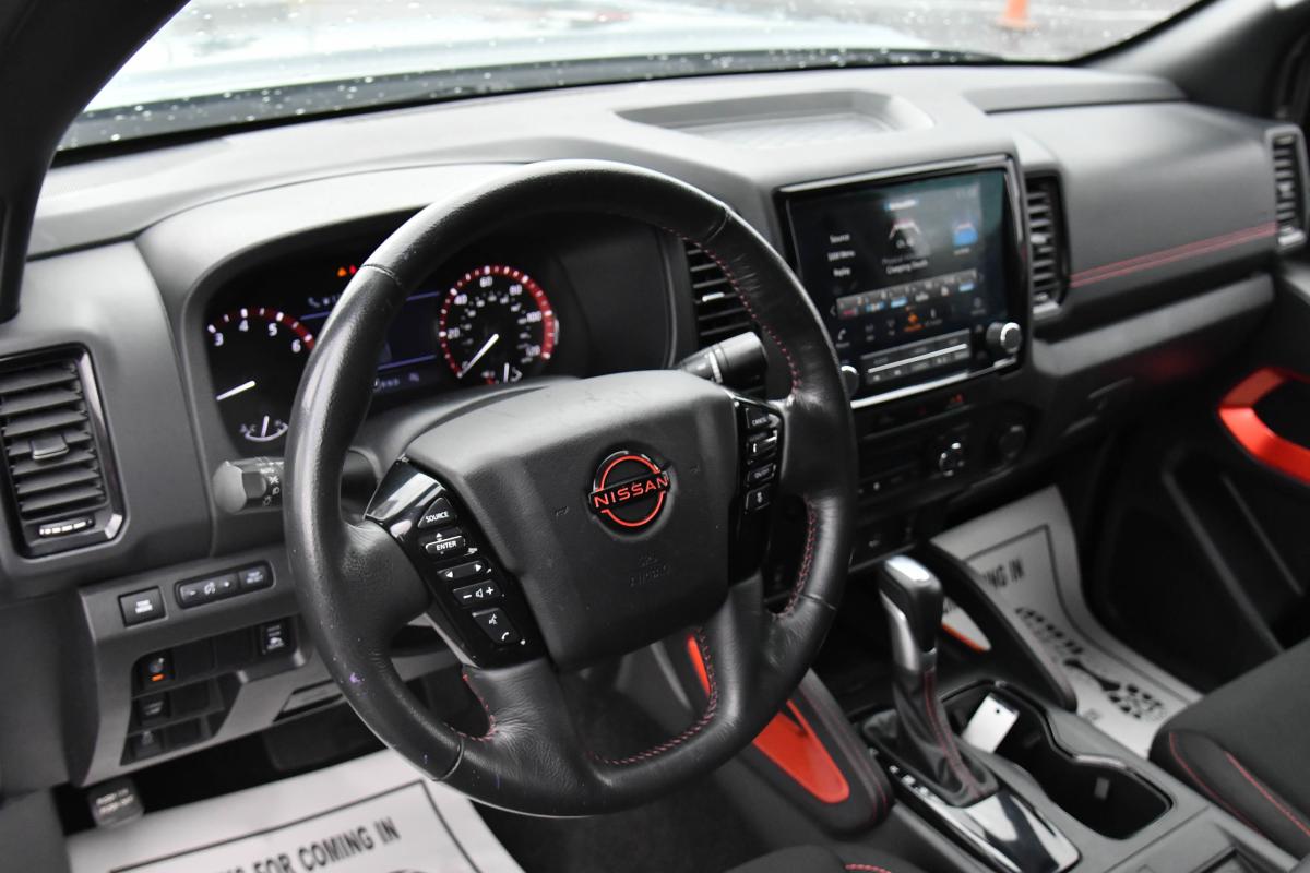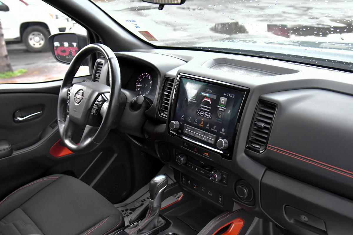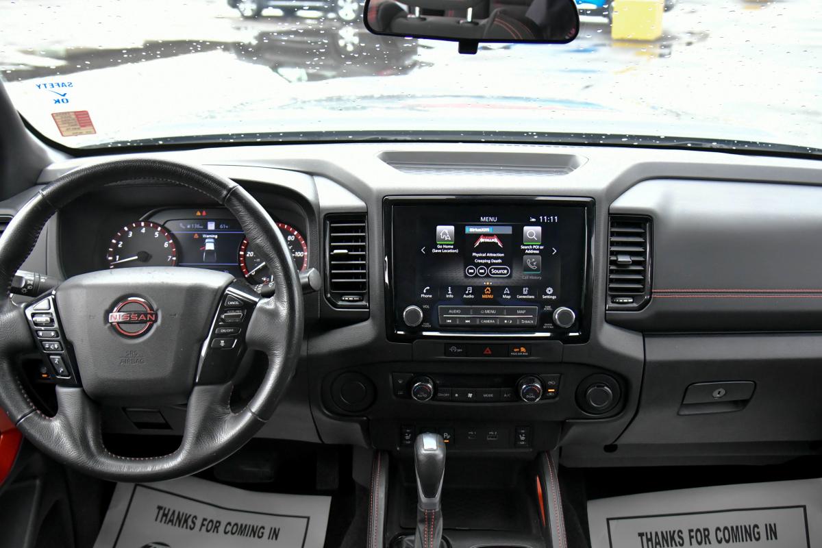 This Nissan Frontier has a strong Regular Unleaded V-6 3.8 L/231 engine powering this Automatic transmission. CHARCOAL W/LAVA RED STIT, PRO EMBROIDERED PREMIUM CLOTH SEAT TRIM, BOULDER GRAY PEARL, [V02] TECHNOLOGY PACKAGE -inc: Rear Sonar System, Rear Automatic Braking (RAB), Traffic Sign Recognition (TSR), High Beam Assist (HBA), Blind Spot Warning (BSW), Rear Cross Traffic Alert (RCTA), Intelligent Cruise Control (ICC), Lane Departure Warning (LDW).*This Nissan Frontier Features the Following Options *[T11] TOW PACKAGE (T11) -inc: hitch and tow harness, [K04] PRO CONVENIENCE PACKAGE -inc: Bed Under-Rail Lighting, Remote Engine Starter, 120V Power Outlet in Bed, Heated Front Seats, Intelligent Around View Monitor (I-AVM), Moving Object Detection, Utili-Track System, 2 adjustable tie-down cleats, Spray-In Bedliner, Trailer Hitch w/Wiring Harness, VPC installed accessory, Heated Steering Wheel, Wireless Charging For Personal Devices, Heated Outside Mirrors, 120V Power Outlet in Rear Center Console , [F93] OFF-ROAD STYLE STEP RAILS, [B93] PRO-X MUD FLAPS, Wireless Phone Connectivity, Wheels: 17 Painted Alloy -inc: Type B, orange bi center cap, Variable Intermittent Wipers, Turn-By-Turn Navigation Directions, Trip Computer, Transmission: 9-Speed Automatic w/Overdrive.