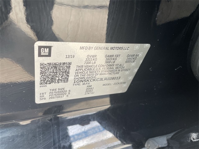 EcoTec3 5.3L V8 1st & 2nd Row Color-Keyed Carpeted Floor Mats, 3.42 Rear Axle Ratio, 3rd Row 60/40 Power Fold Split-Bench, 4-Wheel Antilock Disc Brakes w/Brake Assist, 5 12-Volt Auxiliary Power Outlets, Auto-Dimming Inside Rear-View Mirror, Automatic Emergency Braking, Black Assist Steps w/Chrome Accent Strip, Bose Centerpoint Premium 10-Speaker Surround Sound, Cargo Net, Color-Keyed Carpeting Floor Covering, Driver Inboard & Front Passenger Airbags, Electronic Cruise Control w/Set & Resume Speed, Enhanced Driver Alert Package (Y86), Floor Console, Fog Lamps, Forward Collision Alert, Front & Rear Park Assist, Front Passenger 6-Way Power Seat Adjuster, Hands Free Power Liftgate, Heated & Ventilated Driver & Front Passenger Seats, Heated 2nd Row Outboard Seats, Heated Leather Wrapped Steering Wheel, Integrated Trailer Brake Controller, IntelliBeam Headlamps, Lane Change Alert w/Side Blind Zone Alert, Lane Keep Assist w/Lane Departure Warning, License Plate Front Mounting Package, Magnetic Ride Control Suspension Package, Max Trailering Package, Memory Settings, Navigation System, Passive Entry System, Power Release 2nd Row Bucket Seats, Power Tilt & Telescopic Steering Column, Power-Adjustable Accelerator & Brake Pedals, Power-Folding Heated Outside Mirrors, Preferred Equipment Group 1LZ, Push Button Keyless Start, Rear Cross Traffic Alert, Remote Keyless Entry, Remote Vehicle Start, Roof-Mounted Luggage Rack Side Rails, SiriusXM NavTraffic, SiriusXM Radio, Universal Home Remote, Wireless Charging, 10 Speakers, 3rd row seats: split-bench, 4-Wheel Disc Brakes, ABS brakes, Adaptive suspension, Adjustable pedals, Air Conditioning, Alloy wheels, AM/FM radio: SiriusXM, Apple CarPlay/Android Auto, Auto High-beam Headlights, Auto-dimming door mirrors, Auto-dimming Rear-View mirror, Auto-leveling suspension, Automatic temperature control, Black Roof Rack Cross Rails, Bluetooth for Phone, Bodyside moldings, Brake assist, Bumpers: body-color, CD player, Compass, Delay-off headlights, Driver door bin, Driver vanity mirror, Dual front impact airbags, Dual front side impact airbags, Electronic Stability Control, Emergency communication system: OnStar and Chevrolet connected services capable, Exterior Parking Camera Rear, Front & Rear Black Bowtie Emblems (LPO), Front anti-roll bar, Front Bucket Seats, Front Center Armrest, Front dual zone A/C, Front fog lights, Front Heated Reclining Bucket Seats, Front reading lights, Front wheel independent suspension, Fully automatic headlights, Garage door transmitter, HD Radio, Heated door mirrors, Heated front seats, Heated rear seats, Heated steering wheel, High-Intensity Discharge Headlights, Illuminated entry, Leather steering wheel, Low tire pressure warning, Memory seat, Occupant sensing airbag, Outside temperature display, Overhead airbag, Overhead console, Panic alarm, Passenger door bin, Passenger vanity mirror, Pedal memory, Perforated Leather-Appointed Seat Trim, Power door mirrors, Power driver seat, Power Liftgate, Power passenger seat, Power steering, Power Sunroof, Power windows, Premium audio system: Chevrolet MyLink, Radio: Chevrolet Infotainment AM/FM Stereo w/Nav, Rain sensing wipers, Rear air conditioning, Rear anti-roll bar, Rear reading lights, Rear window defroster, Rear window wiper, Remote keyless entry, Security system, Single-Slot CD/MP3 Player, Speed control, Speed-sensing steering, Split folding rear seat, Spoiler, Steering wheel memory, Steering wheel mounted audio controls, Tachometer, Telescoping steering wheel, Tilt steering wheel, Traction control, Trip computer, Turn signal indicator mirrors, Variably intermittent wipers, Ventilated front seats, Voltmeter, Wheels: 20" x 9" Polished-Aluminum, 1st & 2nd Row Color-Keyed Carpeted Floor Mats, 3.42 Rear Axle Ratio, 3rd Row 60/40 Power Fold Split-Bench, 4-Wheel Antilock Disc Brakes w/Brake Assist, 5 12-Volt Auxiliary Power Outlets, Auto-Dimming Inside Rear-View Mirror, Automatic Emergency Braking, Black Assist Steps w/Chrome