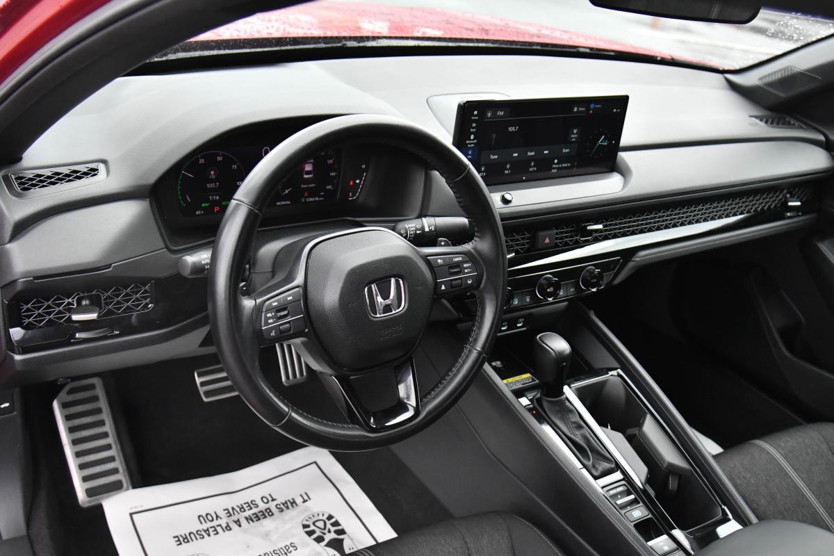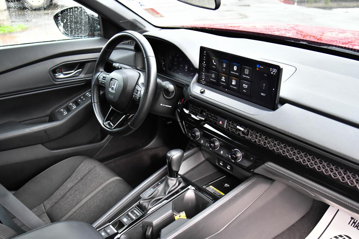 Boasts 41 Highway MPG and 46 City MPG! This Honda Accord Hybrid boasts a Gas/Electric I-4 2.0 L/122 engine powering this Variable transmission. Wheels: 19 x 8.5J Berlina Black -inc: machined face, Vehicle Stability Assist (VSA) Electronic Stability Control (ESC), Valet Function.*This Honda Accord Hybrid Features the Following Options *Trunk Rear Cargo Access, Trip Computer, Transmission: Electronic Continuously Variable -inc: econ, normal, sport and individual modes, Transmission w/Driver Selectable Mode, Traffic Jam Assist, Tires: 235/40R19 96V AS, Tire Specific Low Tire Pressure Warning, Tire Mobility Kit, Strut Front Suspension w/Coil Springs, Speed Sensitive Variable Intermittent Wipers.