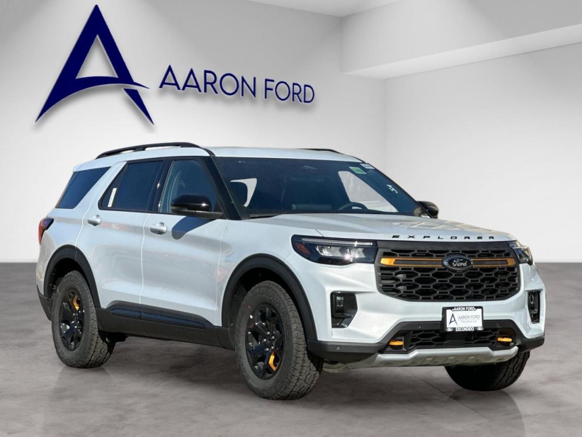 2026 Ford Explorer Tremor Space White Metallic4WD. 4WD 10-Speed Automatic 3.0L EcoBoost V6Aaron Ford of Escondido offers a comprehensive selection of new Ford vehicles, from the adventurous Bronco to the efficient Escape. Our dealership is committed to providing top-notch customer service and helping you find the perfect Ford to fit your lifestyle. Come see us and discover the Ford difference. Price includes: $500 - Bonus Customer Cash. Exp. 01/05/2026