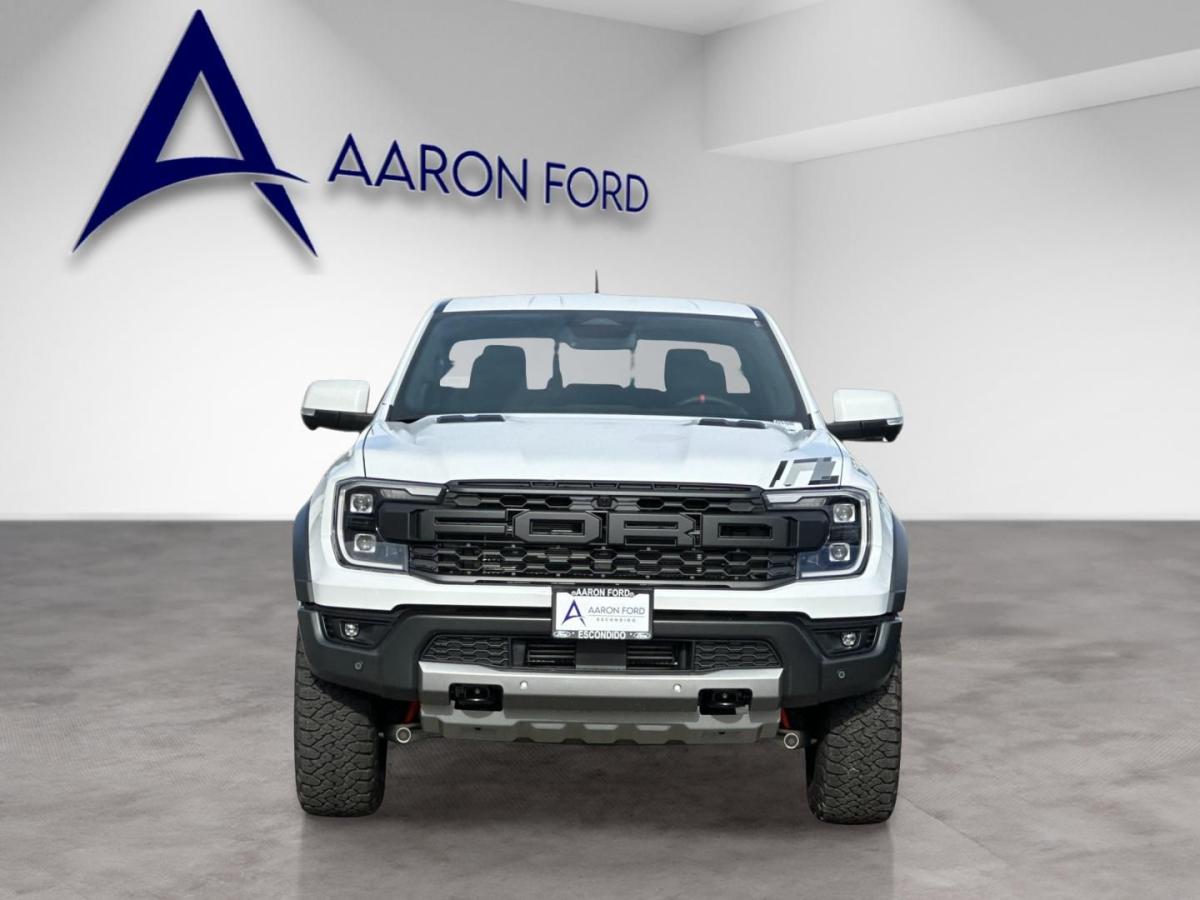 2025 Ford Ranger Raptor Oxford White4WD. 4WD 10-Speed Automatic 3.0L EcoBoost V616/18 City/Highway MPGAaron Ford of Escondido offers a comprehensive selection of new Ford vehicles, from the adventurous Bronco to the efficient Escape. Our dealership is committed to providing top-notch customer service and helping you find the perfect Ford to fit your lifestyle. Come see us and discover the Ford difference. Recent Arrival!