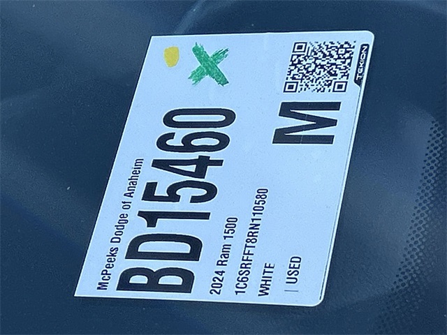 Certified. Clean CARFAX. CARFAX One-Owner. INTERIOR & EXTERIOR PROFESSIONALLY DETAILED FOR DELIVERY, MCPEEK CHRYSLER DODGE JEEP RAM FAMILY OWNED AND OPERATED SINCE 1961 !!!!!.Bright White Clearcoat 2024 Ram 1500 Big Horn/Lone Star 4WD 8-Speed AutomaticFCA US LLC Certified Pre-Owned Details: * Powertrain Limited Warranty: 84 Month/100,000 Mile (whichever comes first) from original in-service date * Vehicles Up to 75,000 Miles and/or 5 Model Years. 24-Hour Towing & Roadside Assistance, Car Rental Allowance, CARFAX® Vehicle History ReportTM and an Introductory 3-month Subscription to SiriusXM® Satellite Radio & Certified Warranty Upgrades * Limited Warranty: 3 Month/3,000 Mile (whichever comes first) after new car warranty expires or from certified purchase date * Vehicle History * Warranty Deductible: $100 * Roadside Assistance * 125 Point Inspection * Transferable WarrantyReceive Free lube and oil filter changes for up to 45,000 miles for 3 years!!! McPeek's Dodge of Anahiem 1221 S. Auto Center Drive Anahiem, CA 92806 714-262-4902.