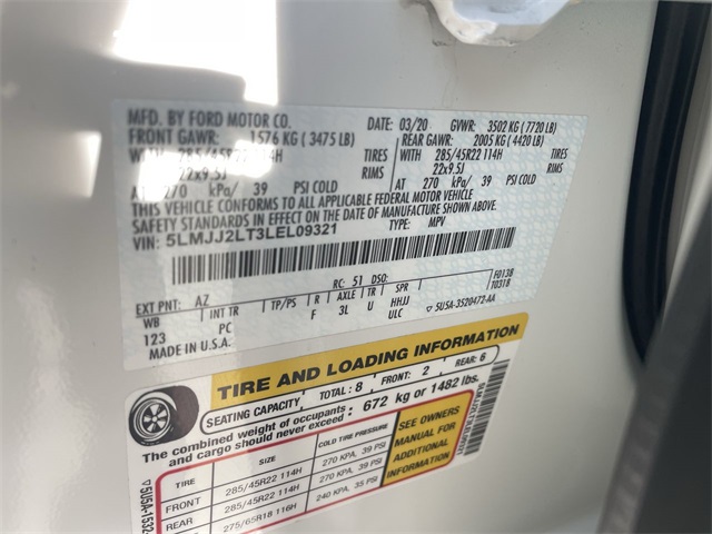 V6 Class IV w/4-Pin & 7-Pin Connectors, Electronic Traction Assist (eLSD), Equipment Group 208A Reserve, GVWR: 7,625 lbs Payload Package, Heavy-Duty Radiator, Heavy-Duty Trailer Tow Package, Luxury Package, Navigation System, Perfect Position Seats (30-Way) w/Active Motion, Pro-Trailer Backup Assist, Revel Ultima Audio System w/20-Speakers, Smart Trailer Tow, Trailer Brake Controller (TBC), Trailer Sway Control, 14 Speakers, 2nd Row Heated 40/20/40 Split Bench Seat, 3.73 Axle Ratio, 3rd row seats: split-bench, 4-Wheel Disc Brakes, ABS brakes, Adaptive suspension, Adjustable pedals, Air Conditioning, Alloy wheels, AM/FM radio: SiriusXM, Audio memory, Auto High-beam Headlights, Auto tilt-away steering wheel, Auto-dimming door mirrors, Auto-dimming Rear-View mirror, Auto-leveling suspension, Automatic temperature control, Body-Color Exterior Mirror Finish, Bodyside moldings, Brake assist, Bumpers: body-color, Compass, Delay-off headlights, Driver door bin, Driver vanity mirror, Driver's Seat Mounted Armrest, Dual front impact airbags, Dual front side impact airbags, Electronic Stability Control, Emergency communication system: 911 Assist, Exterior Parking Camera Rear, Four wheel independent suspension, Front anti-roll bar, Front Bucket Seats, Front dual zone A/C, Front fog lights, Front License Plate Bracket, Front reading lights, Fully automatic headlights, Garage door transmitter, Genuine wood dashboard insert, Genuine wood door panel insert, Head restraints memory, Heads-Up Display, Heated door mirrors, Heated front seats, Heated rear seats, Heated steering wheel, HVAC memory, Illuminated entry, Knee airbag, Leather steering wheel, Low tire pressure warning, Memory seat, Monochromatic Lincoln Badge, Monochromatic Lincoln Grille, Occupant sensing airbag, Outside temperature display, Overhead airbag, Overhead console, Panic alarm, Passenger door bin, Passenger seat mounted armrest, Passenger vanity mirror, Pedal memory, Power adjustable rear head restraints, Power door mirrors, Power driver seat, Power Liftgate, Power moonroof: Panoramic Vista Roof, Power passenger seat, Power steering, Power windows, Premium Lthr Htd/Ventilated Low Back Comfort Seats, Radio data system, Radio: Revel AM/FM/HD/MP3 Audio System, Rain sensing wipers, Rear air conditioning, Rear anti-roll bar, Rear audio controls, Rear reading lights, Rear window defroster, Rear window wiper, Reclining 3rd row seat, Remote keyless entry, Security system, SiriusXM Radio, Slow Climb Drive Mode, Speed control, Speed-sensing steering, Speed-Sensitive Wipers, Split folding rear seat, Spoiler, Steering wheel memory, Steering wheel mounted audio controls, SYNC 3 Communications & Entertainment System, Tachometer, Telescoping steering wheel, Tilt steering wheel, Traction control, Trip computer, Turn signal indicator mirrors, Variably intermittent wipers, Ventilated front seats, Voice-Activated Touchscreen Navigation System, Wheels: 22" 12-Spoke Ultra Bright Machined Alum, Wheels: 22" Monochromatic, Class IV w/4-Pin & 7-Pin Connectors, Electronic Traction Assist (eLSD), Equipment Group 208A Reserve, GVWR: 7,625 lbs Payload Package, Heavy-Duty Radiator, Heavy-Duty Trailer Tow Package, Luxury Package, Navigation System, Perfect Position Seats (30-Way) w/Active Motion, Pro-Trailer Backup Assist, Revel Ultima Audio System w/20-Speakers, Smart Trailer Tow, Trailer Brake Controller (TBC), Trailer Sway Control.Awards: * JD Power Automotive Performance, Execution and Layout (APEAL) Study www.kellerfordhanford.com Excellent selection of Vehicles, Financing options, serving Hanford, Lemoore, Armona, Visalia, Tulare, Fresno, Goshen, Kings County, Tulare County, Fresno County, San Joaquin County, Bakersfield, Kern County. Price excludes government fees and taxes, dealer documentation fee of $85, and any emission testing charge.
