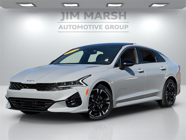 Priced below KBB Fair Purchase Price!Odometer is 19412 miles below market average!Wolf Gray 2023 Kia K5 GT-Line FWD 8-Speed Automatic 1.6L I4 DGI Turbocharged DOHC 16V LEV3-ULEV70 180hpIf you don't drive here, you can't save here!Price may not include recon fee. GT-Line Panoramic Sunroof Package (LED Interior Lighting and Panoramic Sunroof), GT-Line Premium Package (Forward Collision Avoidance-Assist, Highway Driving Assist, LED Projection Headlamps, and Smart Cruise Control w/Stop & Go), 4-Wheel Disc Brakes, 6 Speakers, ABS brakes, Air Conditioning, Alloy wheels, AM/FM radio: SiriusXM, Apple CarPlay & Android Auto, Auto High-beam Headlights, Automatic temperature control, Brake assist, Bumpers: body-color, Carpeted Floor Mats, Cloth/SynTex Seat Trim, Delay-off headlights, Driver door bin, Driver vanity mirror, Dual front impact airbags, Dual front side impact airbags, EC Mirror w/Homelink, Electronic Stability Control, Four wheel independent suspension, Front anti-roll bar, Front Bucket Seats, Front Center Armrest, Front dual zone A/C, Front fog lights, Front reading lights, Fully automatic headlights, Heated door mirrors, Illuminated entry, Knee airbag, Low tire pressure warning, Navigation System, Occupant sensing airbag, Outside temperature display, Overhead airbag, Overhead console, Panic alarm, Passenger door bin, Passenger vanity mirror, Power door mirrors, Power driver seat, Power steering, Power windows, Radio data system, Radio: AM/FM/MP3 Audio System, Rear anti-roll bar, Rear seat center armrest, Rear side impact airbag, Rear window defroster, Remote keyless entry, Security system, Speed control, Speed-sensing steering, Split folding rear seat, Spoiler, Sport steering wheel, Steering wheel mounted audio controls, Tachometer, Telescoping steering wheel, Tilt steering wheel, Traction control, Trip computer, Turn signal indicator mirrors, Variably intermittent wipers, Wheel Locks, and Wheels: 18" Gloss Black Machined Finish Alloy.