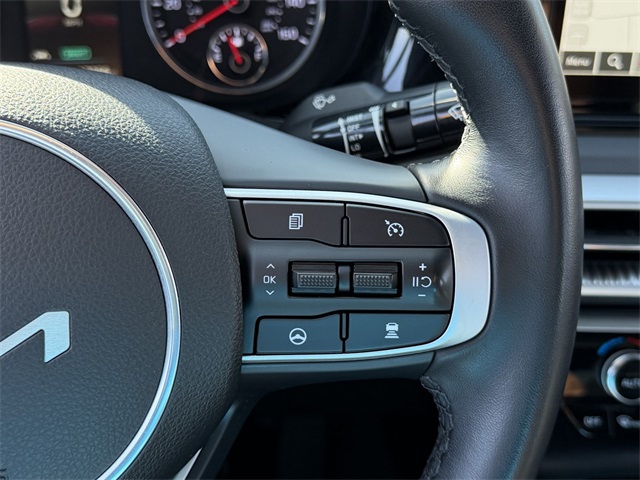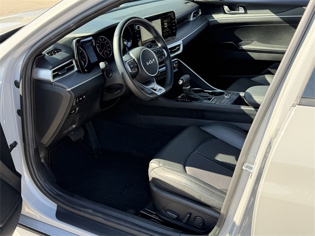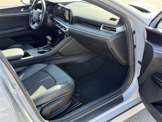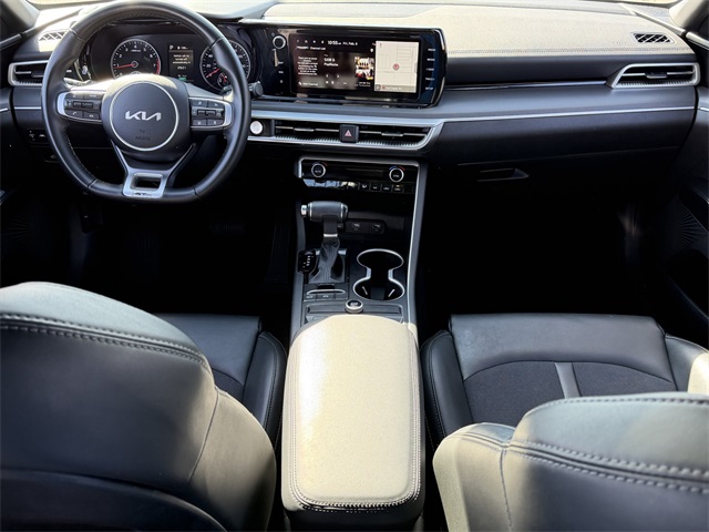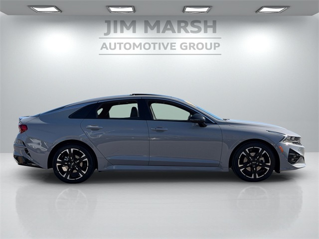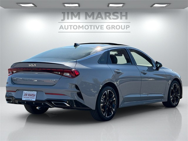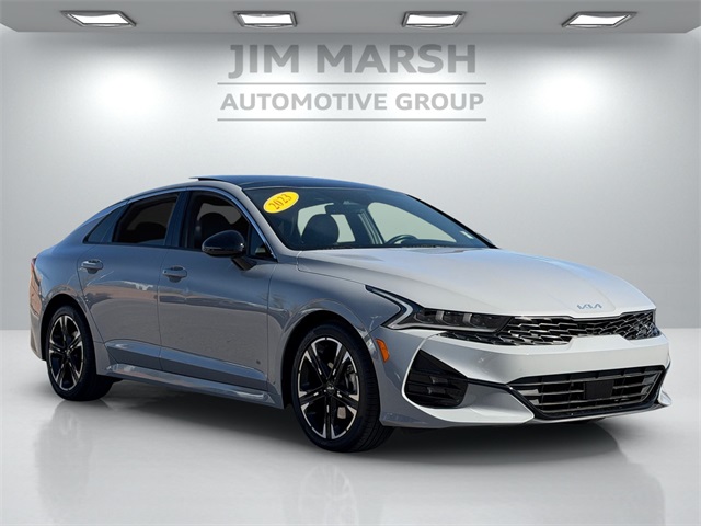 Priced below KBB Fair Purchase Price!Odometer is 22685 miles below market average!Wolf Gray 2023 Kia K5 GT-Line FWD 8-Speed Automatic 1.6L I4 DGI Turbocharged DOHC 16V LEV3-ULEV70 180hpIf you don't drive here, you can't save here!Price may not include recon fee. GT-Line Panoramic Sunroof Package (LED Interior Lighting and Panoramic Sunroof), GT-Line Premium Package (Forward Collision Avoidance-Assist, Highway Driving Assist, LED Projection Headlamps, and Smart Cruise Control w/Stop & Go), 4-Wheel Disc Brakes, 6 Speakers, ABS brakes, Air Conditioning, Alloy wheels, AM/FM radio: SiriusXM, Apple CarPlay & Android Auto, Auto High-beam Headlights, Automatic temperature control, Brake assist, Bumpers: body-color, Carpeted Floor Mats, Cloth/SynTex Seat Trim, Delay-off headlights, Driver door bin, Driver vanity mirror, Dual front impact airbags, Dual front side impact airbags, EC Mirror w/Homelink, Electronic Stability Control, Four wheel independent suspension, Front anti-roll bar, Front Bucket Seats, Front Center Armrest, Front dual zone A/C, Front fog lights, Front reading lights, Fully automatic headlights, Heated door mirrors, Illuminated entry, Knee airbag, Low tire pressure warning, Navigation System, Occupant sensing airbag, Outside temperature display, Overhead airbag, Overhead console, Panic alarm, Passenger door bin, Passenger vanity mirror, Power door mirrors, Power driver seat, Power steering, Power windows, Radio data system, Radio: AM/FM/MP3 Audio System, Rear anti-roll bar, Rear seat center armrest, Rear side impact airbag, Rear window defroster, Remote keyless entry, Security system, Speed control, Speed-sensing steering, Split folding rear seat, Spoiler, Sport steering wheel, Steering wheel mounted audio controls, Tachometer, Telescoping steering wheel, Tilt steering wheel, Traction control, Trip computer, Turn signal indicator mirrors, Variably intermittent wipers, Wheel Locks, and Wheels: 18" Gloss Black Machined Finish Alloy.