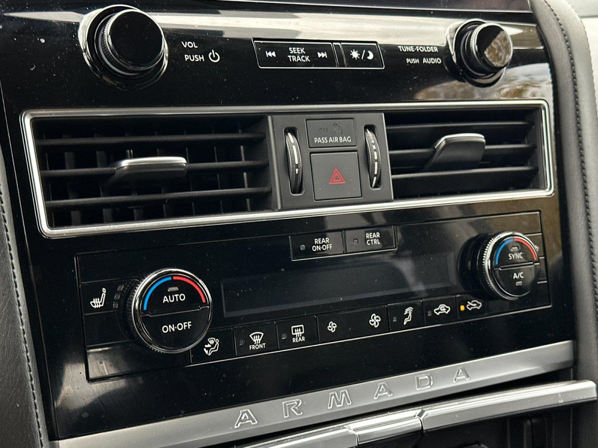 Discover the perfect blend of power, capability, and sophistication in the 2024 Nissan Armada SV. This impressive full-size SUV is ready to elevate your driving experience with its exceptional performance and meticulously crafted features.Boasting a robust 5.6L V8 engine that delivers an impressive 400 horsepower, the Armada SV is engineered to conquer any terrain. Paired with a smooth-shifting 7-speed automatic transmission and a capable 4-wheel-drive system, this SUV offers the perfect balance of power and control, ensuring a confident and responsive ride no matter the conditions.• 3RD ROW CARPETED FLOOR MATS - BENCH SEAT• Carpeted cargo mat• Collision Warning System• Parking Sensors• Premium Sound• Push Button Ignition• Navigation SystemExperience the ultimate in comfort and convenience with the Armada SV's well-appointed interior. Settle into the luxurious leather-trimmed seats, which offer both heating and power adjustability for the driver and passenger. The intuitive NissanConnect infotainment system, complete with SiriusXM radio and navigation, keeps you connected and entertained on every journey.Elevate your driving experience with the Armada SV's impressive array of advanced safety features. Enjoy the peace of mind provided by systems like Automatic Emergency Braking, Blind Spot Monitoring, and Rear Cross-Traffic Alert, all working together to help keep you and your passengers secure.With a spacious and versatile cabin, the Armada SV offers ample room for your family and all their belongings. The split-folding second and third-row seats provide flexible cargo solutions, while the power liftgate makes loading and unloading a breeze.Combining exceptional power, refined style, and advanced technology, the 2024 Nissan Armada SV is the ultimate full-size SUV. Experience the difference for yourself and schedule a test drive today. We're confident you'll be impressed by this remarkable vehicle's capabilities and confident that it's the perfect fit for your lifestyle.