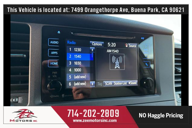 THIS VEHICLE IS LOCATED AT OUR BUENA PARK LOCATION: 7479 ORANGETHORPE AVE, BUENA PARK CA 90621. Please Call us at 657-255-4555 or 714-202-2809 or email us at BUENAPARK@ZEEMOTORSINC.COM To Check Availability. * 1-OWNER* Clean Title. * Clean Carfax. * No Accidents.* Very Well Maintained Vehicle, Service records available on CARFAX. * Very Clean Inside and Outside.* Passed Safety inspection and Smog Check.Attention to all buyers: All special prices are cash price and it does not include sales tax, license and registration fee, documentation fee, smog fee or any dealer add-ons / accessories. Additional financing charges may apply on approved credit. While great effort is made to ensure the accuracy of the information provided on this site, errors do occur so please verify information with a team member. This is easily done by contacting us via phone or email (Call or Text 657-346-8544) **** THIS VEHCILE IS EQUIPPED WITH ANTI-THEFT DEVICE AND GPS TRACKING SYSTEM ****All our Vehicles are sold as is where is with no warranty expressed written or implied. The Seller shall not be responsible for the correct description authenticity genuineness or defects herein and makes no warranty in connection therewith. No allowance or set a side will be made on account of any incorrectness imperfection defect or damage. Any descriptions or representations are for identification purposes only and are not to be construed as a warranty of any type. It is the responsibility of the buyer to have thoroughly inspected the vehicle and to have satisfied himself or herself as to the condition and value and to buy based upon that judgement solely. The seller shall and will make every reasonable effort to disclose any known defects associated with this vehicle at the buyer's request prior to the close of sale. Seller assumes no responsibility for any repairs regardless of any oral statements about the vehicle.