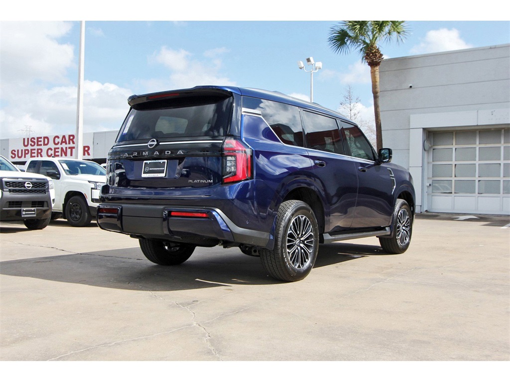 South Houston Nissan is proud to present you with another True Market Priced Vehicle. This 2025 Nissan Armada Platinum is loaded with the following Factory Options: 12 Speakers, 20" Painted Alloy Wheels, 3rd row seats: split-bench, 4-Wheel Disc Brakes, ABS brakes, Air Conditioning, Alloy wheels, AM/FM radio: SiriusXM, Anti-whiplash front head restraints, Auto High-beam Headlights, Auto tilt-away steering wheel, Auto-dimming door mirrors, Auto-dimming Rear-View mirror, Auto-leveling suspension, Automatic temperature control, Brake assist, Bumpers: body-color, Carpeted Floor Mats - Captain Chairs, Center Front Spoiler, Climate Controlled Heated & Ventilated Front Seats, Delay-off headlights, Driver door bin, Driver vanity mirror, Dual front impact airbags, Dual front side impact airbags, Electronic Stability Control, Emergency communication system: NissanConnect Services, Four wheel independent suspension, Front anti-roll bar, Front Bucket Seats, Front Center Armrest, Front dual zone A/C, Front fog lights, Front reading lights, Fully automatic headlights, Garage door transmitter: myQ Connected Garage, Genuine wood dashboard insert, Heated door mirrors, Heated front seats, Heated rear seats, Heated steering wheel, HVAC memory, Illuminated entry, Illuminated Kick Plates, Knee airbag, Leather steering wheel, Low tire pressure warning, Memory seat, Navigation System, Occupant sensing airbag, Outside temperature display, Overhead airbag, Overhead console, Panic alarm, Passenger door bin, Passenger vanity mirror, Power door mirrors, Power driver seat, Power Liftgate, Power moonroof, Power passenger seat, Power steering, Power windows, Quilted Leather Seat Trim, Radio: NissanConnect w/SiriusXM 360L, Rain sensing wipers, Rear air conditioning, Rear anti-roll bar, Rear Bumper Protector, Rear reading lights, Rear window defroster, Rear window wiper, Reclining 3rd row seat, Remote keyless entry, Roof Rail Cross Bars, Security system, Speed control, Speed-sensing steering, Speed-Sensitive Wipers, Splash Guards, Split folding rear seat, Spoiler, Steering wheel memory, Steering wheel mounted audio controls, Tachometer, Telescoping steering wheel, Tilt steering wheel, Traction control, Trip computer, Turn signal indicator mirrors, USB Charging Cables, Variably intermittent wipers, Ventilated front seats, and Voltmeter!!No-Hassle quotes include all manufacturer and dealer incentives. Must finance with NMAC at standard rates to receive displayed price. Cannot be combined with other offers unless specifically disclosed by dealer. Excludes sales taxes (vary by state) tag-title-license and dealer added options, adm, and $225 doc fee. Not everyone qualifies for NMAC financing. Price in lieu of any special APR incentives. Requires Retail Owners, Communication Certificate, College Grad, Military or VPP Claim Number. Price does not include SHN Advantage Package (Lifetime Powertrain Warranty, Lifetime Window Tint, Lifetime Car washes 2 years Oil Changes (Total of 3), Nitrogen Filled Tires, Wheel Locks, and 1-year Exterior Protection Coverage & 1 year of GPS) $5995. Price variance can be +/- $2,000 based on zip code rebates and NMAC financing rebates. Price includes: $1500 - Nissan MY25 Armada Bonus Cash. Exp. 01/05/2026 $500 - Nissan MY25 Armada Bonus Cash - Dallas Cluster. Exp. 01/05/2026