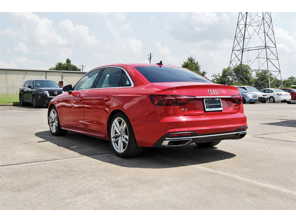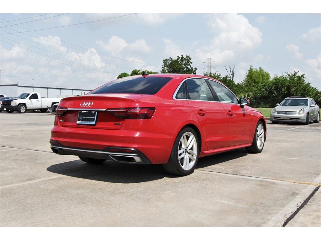 2023 AUDI A4 45 S LINE PREMIUM PLUS QUATTRO – TRUE MARKET PRICED & FULLY LOADED!South Houston Nissan proudly offers this A4 45 S line Premium Plus with quattro AWD, 7-Speed S tronic, heated sport seats, leather interior, moonroof, and premium technology throughout.KEY FEATURES:• quattro All-Wheel Drive• 7-Speed S tronic Automatic• Black Leather Seating Surfaces• Heated Front Sport Bucket Seats• Power Moonroof• Genuine Wood Interior Inlays• 18" 5-Double-Spoke Alloy WheelsTECHNOLOGY & AUDIO:• Audi Smartphone Interface (Apple CarPlay / Android Auto)• Audi Sound System w/ 10 Speakers• Garage Door Transmitter (HomeLink)• Auto-Dimming Rearview Mirror• Rearview Camera• Trip Computer & Digital Display• Radio Data SystemSAFETY & DRIVER ASSIST:• Audi connect CARE Emergency Services• Electronic Stability Control• Traction Control• Auto High-Beam Headlights• Rain-Sensing Wipers• Dual Front, Side & Knee Airbags• Low Tire Pressure Monitoring• Rear Anti-Roll Bar• Fully Automatic HeadlightsINTERIOR & COMFORT:• Front Dual-Zone Automatic Climate Control• Rear Air Conditioning• Leather Steering Wheel & Shift Knob• Power Driver & Passenger Seats• Front Bucket Seats• Split Folding Rear Seats• Illuminated Entry• Tilt/Telescoping Steering Wheel• Center Armrests (Front & Rear)EXTERIOR:• Heated Door Mirrors• Turn Signal Mirrors• Body-Color Bumpers• Front Fog Lights• Rear Window DefrosterADDITIONAL EQUIPMENT:• 4-Wheel Disc Brakes• ABS Brakes• Four-Wheel Independent Suspension• Speed-Sensitive Wipers• Remote Keyless Entry• AM/FM Radio• Variably Intermittent WipersDISCLAIMER:Excludes sales tax, tag, title, license & dealer-added options. Must finance with South Houston Nissan for online pricing.