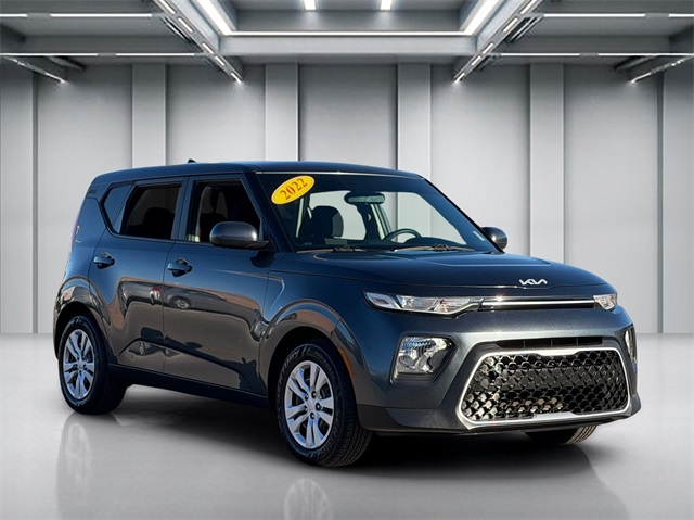 Recent Arrival!CARFAX One-Owner.29/35 City/Highway MPGGravity Gray 2022 Kia Soul LX FWD CVT 2.0L I4 DOHCIf you don't drive here, you can't save here!Price may not include recon fee. 16" x 6.5" Alloy Wheels, 16" x 6.5" Steel Wheels, 4-Wheel Disc Brakes, 6 Speakers, ABS brakes, Air Conditioning, AM/FM radio, Apple CarPlay & Android Auto, Brake assist, Bumpers: body-color, Carpeted Floor Mats, Delay-off headlights, Driver door bin, Driver vanity mirror, Dual front impact airbags, Dual front side impact airbags, Electronic Stability Control, Exterior Parking Camera Rear, Front anti-roll bar, Front Bucket Seats, Front Center Armrest, Front reading lights, Front wheel independent suspension, Fully automatic headlights, Illuminated entry, Low tire pressure warning, Occupant sensing airbag, Outside temperature display, Overhead airbag, Overhead console, Panic alarm, Passenger door bin, Passenger vanity mirror, Power door mirrors, Power steering, Power windows, Radio: AM/FM/MP3 Audio System, Rear Bumper Applique, Rear window defroster, Rear window wiper, Remote keyless entry, Speed control, Speed-sensing steering, Split folding rear seat, Steering wheel mounted audio controls, Tachometer, Telescoping steering wheel, Tilt steering wheel, Traction control, Trip computer, Variably intermittent wipers, and Woven & Tricot Cloth Seat Trim.