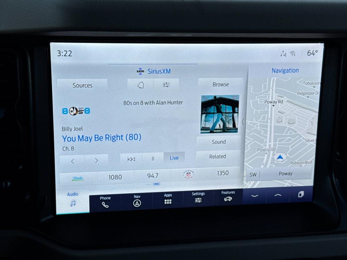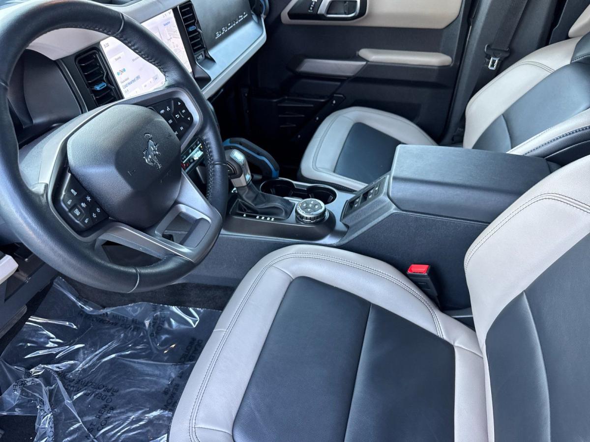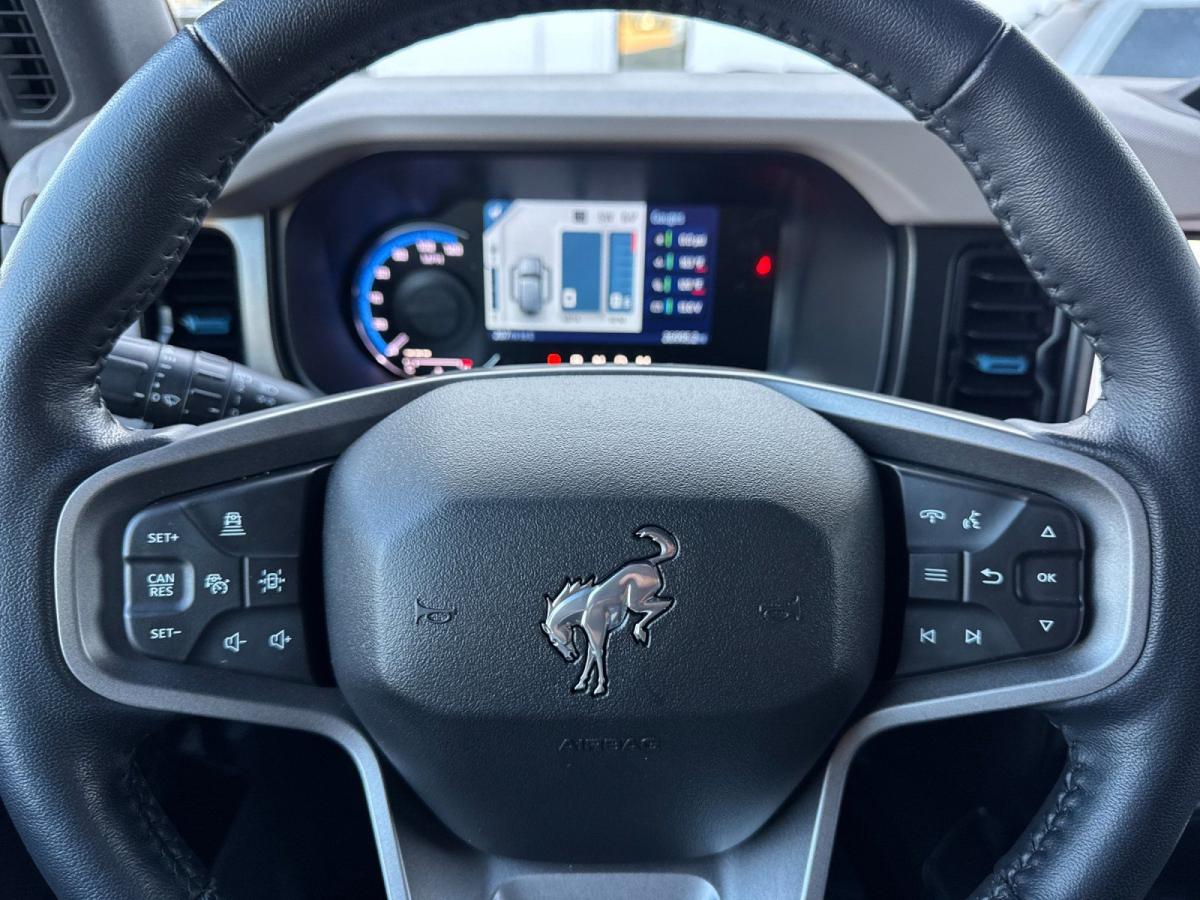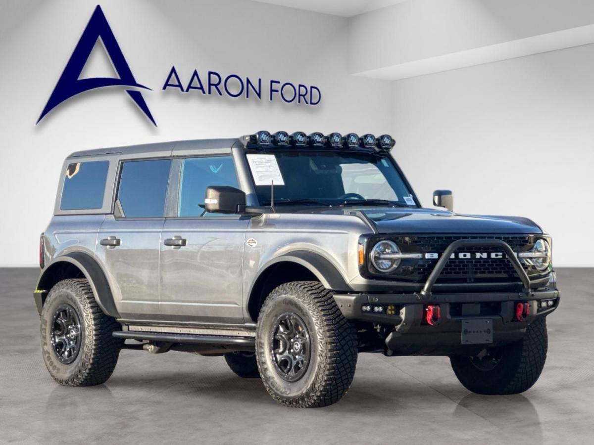 Elevate your driving experience with this exceptional 2023 Ford Bronco Wildtrak. Boasting a powerful 2.7L EcoBoost V6 engine paired with a smooth 10-speed automatic transmission, this 4WD SUV delivers exceptional performance and capability. Finished in a sleek Gray exterior, this Bronco Wildtrak is a true head-turner.Standout features include:• Ford Performance Heavy-Duty Modular Front Bumper• Carbonized Gray Molded-In-Color Hard Top• Front Row Top Panels Storage Bag• Towing Capability• Brush Guard• Front & Rear Floor LinersThe Lux Package takes this Bronco to the next level, offering:• 12" LCD Capacitive Touchscreen with Swipe Capability• Wireless Charging Pad• Heated Steering Wheel• Adaptive Cruise Control• 360-Degree Camera• Connected Built-In Navigation with 3 Years of ServiceSlip into the heated, leather-trimmed bucket seats and experience the premium B&O sound system with 10 speakers and a subwoofer. With only 26,717 miles, this one-owner Bronco Wildtrak is a true gem. The clean CARFAX report and non-smoker status give you peace of mind.Safety and technology are also top priorities, with features like Collision Warning System, Parking Sensors, Push-Button Ignition, and SYNC 4 connectivity. Dual-zone automatic climate control, power windows, and remote keyless entry add to the exceptional comfort and convenience.Whether conquering the trails or cruising the city streets, this 2023 Ford Bronco Wildtrak is ready to elevate your driving experience. Schedule a test drive today and discover the perfect blend of capability, technology, and style.