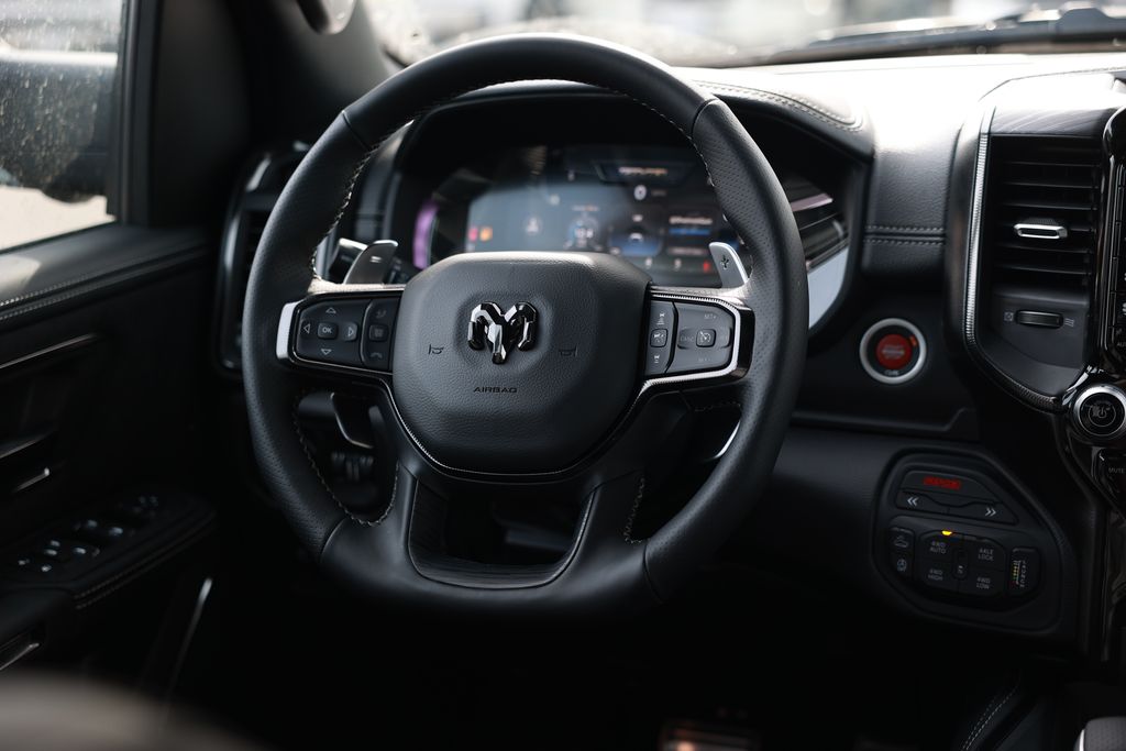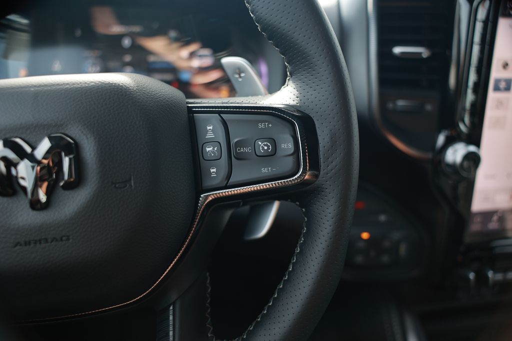 Elevate your driving experience with this exceptional 2026 Ram 1500 RHO. Boasting a sleek black exterior and a powerful 3.0L I6 engine paired with an 8-Speed Automatic transmission and 4-Wheel Drive, this truck is primed to tackle any terrain with confidence.Highlighted features include:• GPS Navigation• 10 Speakers• Adaptive Suspension• Flareside Box• Auto Power-Folding Mirrors• 4G LTE Wi-Fi Hot Spot• Apple CarPlay/Android Auto• Heated Steering Wheel• Leather Trimmed Bucket Seats• Wheels: 18" x 9" Black Paint/Polish AluminumDesigned to exceed your expectations, this Ram 1500 RHO combines cutting-edge technology, premium comfort, and uncompromising capability. The adaptive suspension and 4-Wheel Drive system ensure a smooth, responsive ride, whether you're navigating city streets or venturing off the beaten path. Step inside and experience the epitome of modern luxury, with features like heated front seats, a heated steering wheel, and a stunning 12.0" Uconnect 5 Navigation display. Seamlessly integrate your smartphone with Apple CarPlay and Android Auto, keeping you connected and entertained on every journey.Safety is paramount, and this Ram 1500 RHO delivers with a comprehensive suite of advanced driver-assistance technologies, including Automatic High-Beam Headlights, Rear Park Assist, and Blind Spot Monitoring. You'll drive with confidence, knowing you and your passengers are well-protected.Elevate your driving experience and make a bold statement with this exceptional 2026 Ram 1500 RHO. Visit our showroom today to take this remarkable truck for a test drive and discover the unparalleled power, technology, and style that awaits you.