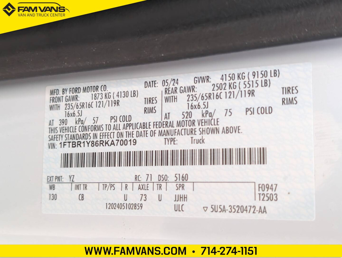 Here at FAM Vans we have over 350 vans and trucks in stock at any given time, plus we get fresh inventory every month. We can modify any vehicle to fit your needs or find the right one that fits your budget! Full Parts and Service departments. -130-in WB -GVWR: 9,070 LBS -Dimensions: 219.9 L x 97.4 W x 82.2 H -Cargo Volume: 280.9 cubic ft