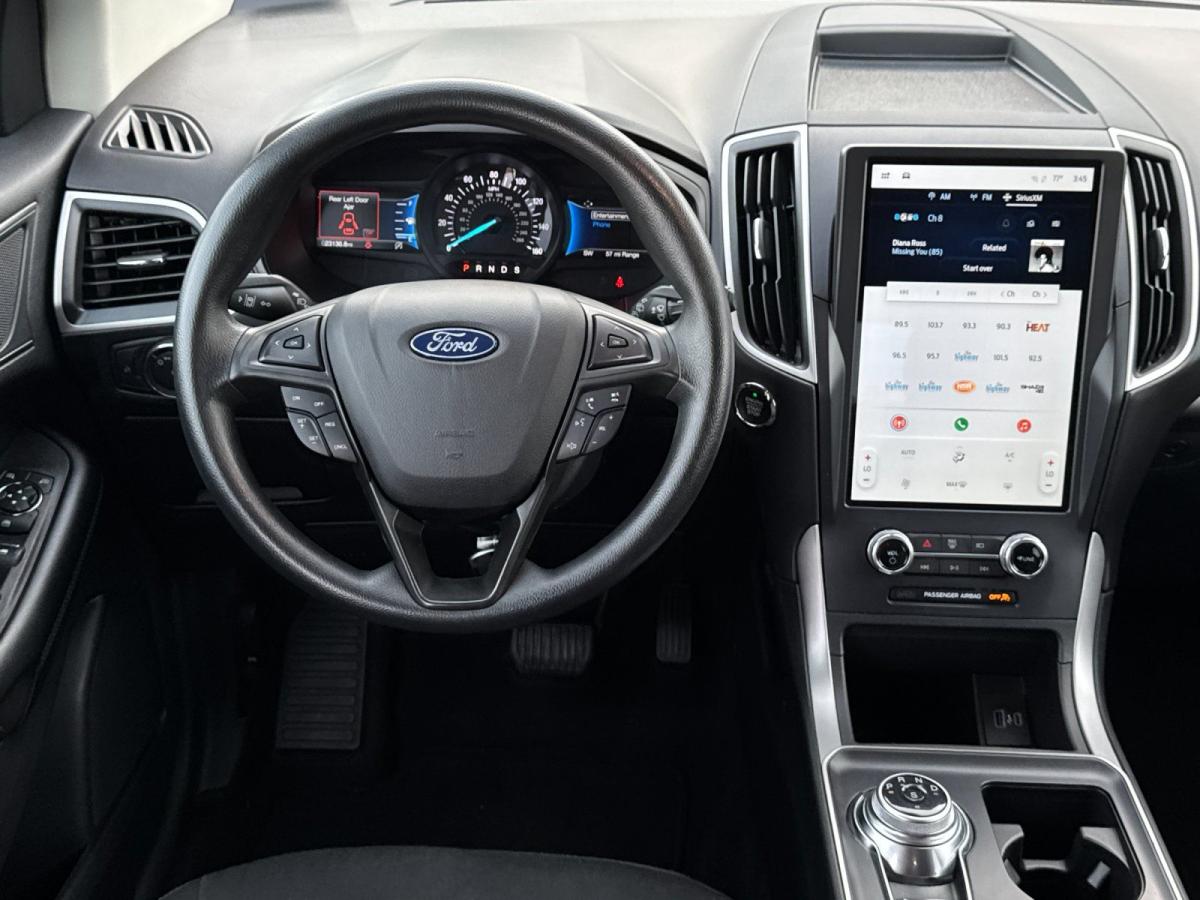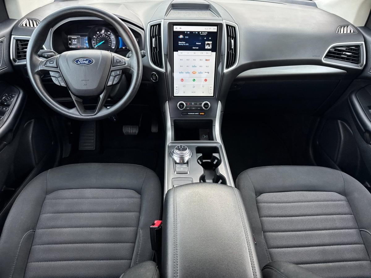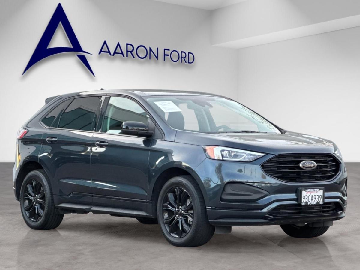 Introducing the 2022 Ford Edge SE, a sophisticated and versatile SUV that combines style, performance, and advanced technology. This exceptional vehicle is now available on our lot, and we're confident it will exceed your expectations.Highlighted features include:• Black Appearance Package with 19" High-Gloss Black Painted Aluminum Wheels• Stone Blue Metallic Exterior Color• Mini Spare WheelThe Edge SE is powered by a turbocharged 2.0L EcoBoost engine, delivering a thrilling and efficient driving experience. With 8-speed automatic transmission and available All-Wheel Drive, this SUV is ready to tackle any road with confidence.Beyond its impressive performance, the 2022 Edge SE offers a wealth of cutting-edge technology and premium amenities. The SYNC 4A infotainment system with Enhanced Voice Recognition keeps you connected and in control, while the Collision Warning System and Rear Parking Sensors provide added peace of mind. The available Premium Sound system ensures an immersive audio experience, and the Push-Button Ignition adds a touch of modern convenience.Slip into the comfortable and spacious cabin, where the Leather-Trimmed Seats and Dual-Zone Automatic Climate Control create a welcoming environment. The Split-Folding Rear Seat and generous cargo space make the Edge SE an ideal companion for your adventures, whether it's a weekend getaway or a daily commute.With its sleek and sophisticated styling, the 2022 Ford Edge SE is a standout in its class. The Black Appearance Package, featuring bold black accents, adds a touch of athletic flair, while the body-color front and rear bumpers, black badges, and black-painted lower bodyside molding exude a refined and modern aesthetic.We're confident that the 2022 Ford Edge SE will exceed your expectations. This SUV is a true testament to Ford's commitment to engineering excellence and customer satisfaction. Visit our showroom today to experience the Edge SE for yourself and discover why it's the perfect choice for your next vehicle.