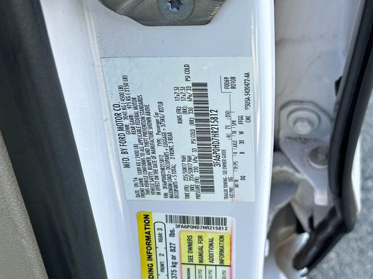 Elevate your driving experience with this meticulously maintained 2017 Ford Fusion SE. Boasting a sleek White Platinum Metallic Tri-Coat exterior, this sedan combines style, technology, and performance to deliver a truly exceptional driving experience.Key features of this well-equipped Fusion SE include:• SYNC 3 Communications & Entertainment System• Dual-Zone Electronic Automatic Temperature Control• Power driver seat• Power steering• Remote keyless entry• Exterior Parking Camera Rear• Delay-off headlights• Fully automatic headlights• Cloth Front Bucket Seats• Wheels: 17" Premium Painted Luster NickelPowered by a 1.5L EcoBoost engine with 6-Speed Automatic transmission and Front-Wheel Drive, this Fusion SE delivers an impressive 23 city / 34 highway MPG, making it both efficient and enjoyable to drive.Elevate your commute with the Fusion SE Technology Package, which includes a Reverse Sensing System, Premium Audio System with 11 speakers, and enhanced SYNC 3 features like Apple CarPlay, Android Auto, and 911 Assist. Stay comfortable with Dual-Zone Electronic Automatic Temperature Control, and enjoy the convenience of Remote Keyless Entry.Safety is also a top priority, with features like Dual Front Impact Airbags, Dual Front Side Impact Airbags, Electronic Stability Control, and a Rear View Camera to provide peace of mind on the road.This 2017 Ford Fusion SE is an exceptional value, priced at just $10,750. With low mileage and a wealth of premium features, this sedan is ready to deliver an exceptional driving experience. Visit our showroom today to take this Fusion for a test drive and discover the difference it can make in your daily commute.