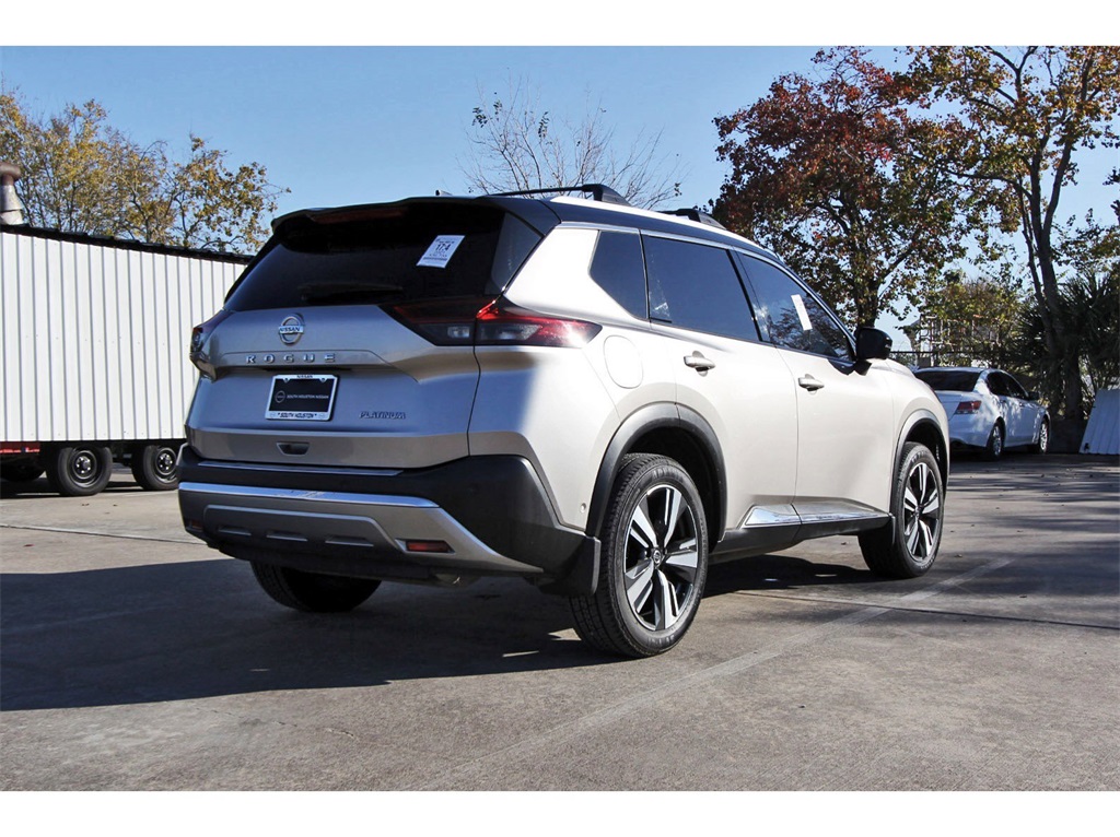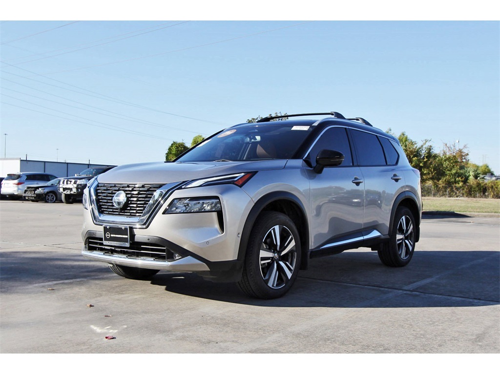 South Houston Nissan is proud to present you with another True Market Priced Pre-Owned Vehicle. This 2021 Nissan Rogue Platinum is loaded with the following Factory Options: 10 Speakers, 19" Aluminum Alloy Wheels, 4-Wheel Disc Brakes, 5.604 Axle Ratio, ABS brakes, Air Conditioning, Alloy wheels, AM/FM radio, Auto High-beam Headlights, Auto-dimming Rear-View mirror, Automatic temperature control, Black Splash Guards (Set of 4), Bose Premium Audio System, Brake assist, Bumpers: body-color, Chrome Rear Bumper Protector, Delay-off headlights, Driver door bin, Driver vanity mirror, Dual front impact airbags, Dual front side impact airbags, Electronic Stability Control, Emergency communication system: NissanConnect Services, Exterior Parking Camera Rear, External Ground Lighting, First Aid Kit, Floor Mats w/2-Piece Cargo Area Protector, Four wheel independent suspension, Front anti-roll bar, Front Bucket Seats, Front Center Armrest, Front dual zone A/C, Front fog lights, Front reading lights, Fully automatic headlights, Heads-Up Display, Heated door mirrors, Heated Front Bucket Seats, Heated front seats, Heated rear seats, Heated steering wheel, Illuminated entry, Illuminated Kick Plates, Interior Accent Lighting, Knee airbag, Leather steering wheel, Low tire pressure warning, Memory seat, Navigation system: NissanConnect Navigation, NissanConnect featuring Apple CarPlay and Android Auto, Occupant sensing airbag, Outside temperature display, Overhead airbag, Overhead console, Panic alarm, Passenger door bin, Passenger vanity mirror, Power door mirrors, Power driver seat, Power Liftgate, Power moonroof, Power passenger seat, Power steering, Power windows, Quilted Semi-Aniline Leather Seat Trim, Radio data system, Radio: AM/FM NissanConnect w/Navigation, Rear air conditioning, Rear anti-roll bar, Rear seat center armrest, Rear side impact airbag, Rear window defroster, Rear window wiper, Remote keyless entry, Roof rack: rails only, Security system, Speed control, Speed-Sensitive Wipers, Split folding rear seat, Spoiler, Steering wheel mounted audio controls, Tachometer, Telescoping steering wheel, Tilt steering wheel, Traction control, Trip computer, Turn signal indicator mirrors, and Variably intermittent wipers!!Excludes sales taxes (vary by state) tag-title-license and dealer added options. Must finance with South Houston Nissan to qualify for online pricing.