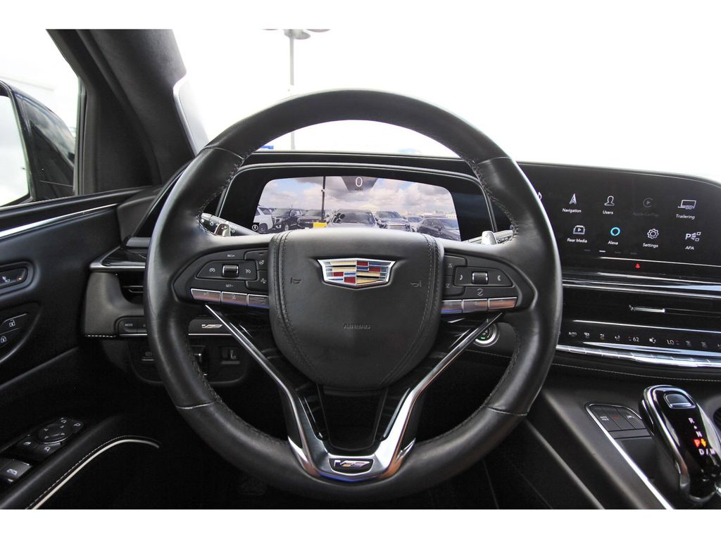 Central Houston Cadillac is proud to present you with another True Market Priced Pre-Owned Vehicle. This 2023 Cadillac Escalade V-Series is loaded with the following Factory Options: AWD and Jet Black Leather Preferred Equipment Group 1SD (Active Noise Cancellation, Adaptive Cruise Control, AKG Studio Reference 36-Speaker Audio System, Automatic Seat Belt Tightening, Body-Color Door Handles, Door Lock & Latch Shields, Electronic Limited-Slip Differential, Enhanced Automatic Emergency Braking, Enhanced Automatic Parking Assist, Floor Console w/Covered Storage, Front Auxiliary 12-volt Power Outlet, Glass Breakage Sensor, Heated & Ventilated Driver & Front Passenger Seats, Hitch Guidance w/Hitch View, Integrated Trailer Brake Controller, Platinum Interior Trim, Power Lumbar Massage Driver Seat, Power Lumbar Massage Front Passenger Seat, Power Panoramic Tilt-Sliding Sunroof, Power-Retractable Assist Steps, Rear Camera Mirror, Rear Camera Mirror Washer, Rear Cross Traffic Alert, Rear Seat Entertainment System, Reconfigurable Full-Color Head-Up Display, Reverse Automatic Braking, Smart Trailer Integration Indicator, Theft-Deterrent Alarm System, Trailer Side Blind Zone Alert, Vehicle Inclination Sensor, and Vehicle Interior Movement Sensor), Touring Package (Air Ride Adaptive Suspension, Illuminating Front & Rear Sill Plates, and Soft Closing Front & Rear Doors), AWD, Jet Black Leather, 16.9" Diagonal OLED Infotainment Screen, 2-Presets Memory For Driver Seat Adjuster, 3 Years of OnStar & Connected Services Plan, 3.23 Axle Ratio, 3rd row seats: split-bench, 4-Way Power Driver Lumbar Seat Adjuster, 4-Way Power Front Passenger Lumbar Seat Adjuster, 4-Wheel Disc Brakes, 8-Way Power Driver Seat Adjuster, 8-Way Power Front Passenger Seat Adjuster, A/V remote, ABS brakes, Adaptive suspension, Air Conditioning, Alloy wheels, AM/FM radio: SiriusXM with 360L, Apple CarPlay/Android Auto, Audio memory, Auto High-beam Headlights, Auto tilt-away steering wheel, Auto-dimming door mirrors, Auto-dimming Rear-View mirror, Automatic temperature control, Brake assist, Bumpers: body-color, Compass, Cooled Console w/Covered Storage, Delay-off headlights, Door auto-latch, Driver door bin, Driver vanity mirror, Dual front impact airbags, Dual front side impact airbags, Electronic Stability Control, Emergency communication system: OnStar and Cadillac connected services capable, Exterior Parking Camera Rear, Four wheel independent suspension, Front anti-roll bar, Front Bucket Seats, Front Center Armrest w/Storage, Front dual zone A/C, Front License Plate Bracket, Front reading lights, Full Semi-Aniline Leather Seat Trim, Fully automatic headlights, Garage door transmitter, Genuine wood console insert, Genuine wood dashboard insert, Genuine wood door panel insert, HD Radio, Headphones, Heads-Up Display, Heated door mirrors, Heated Driver & Front Passenger Seats, Heated front seats, Heated rear seats, Heated steering wheel, Illuminated entry, Leather steering wheel, Low tire pressure warning, Magnetic Ride Control Suspension, Memory seat, Navigation System, Night vision lights, Not Equipped w/2nd Row Express-Up Window Control, Not Equipped w/Super Cruise, Not Equipped w/Super Cruise (00U), Occupant sensing airbag, Outside temperature display, Overhead airbag, Overhead console, Panic alarm, Passenger door bin, Passenger vanity mirror, Power door mirrors, Power driver seat, Power Liftgate, Power moonroof, Power passenger seat, Power steering, Power windows, Radio data system, Radio: AM/FM w/Navigation, Rain sensing wipers, Rear air conditioning, Rear anti-roll bar, Rear audio controls, Rear reading lights, Rear window defroster, Rear window wiper, Remote keyless entry, Security system, SiriusXM w/360L, Speed control, Split folding rear seat, Spoiler, Steering wheel memory, Steering wheel mounted audio controls, Super Cruise, Tachometer, Teen Driver, Telescoping steering wheel, Tilt steering wheel, Traction control, Trip computer, Turn signal indicator mirrors,