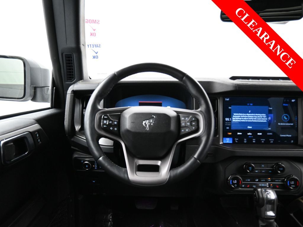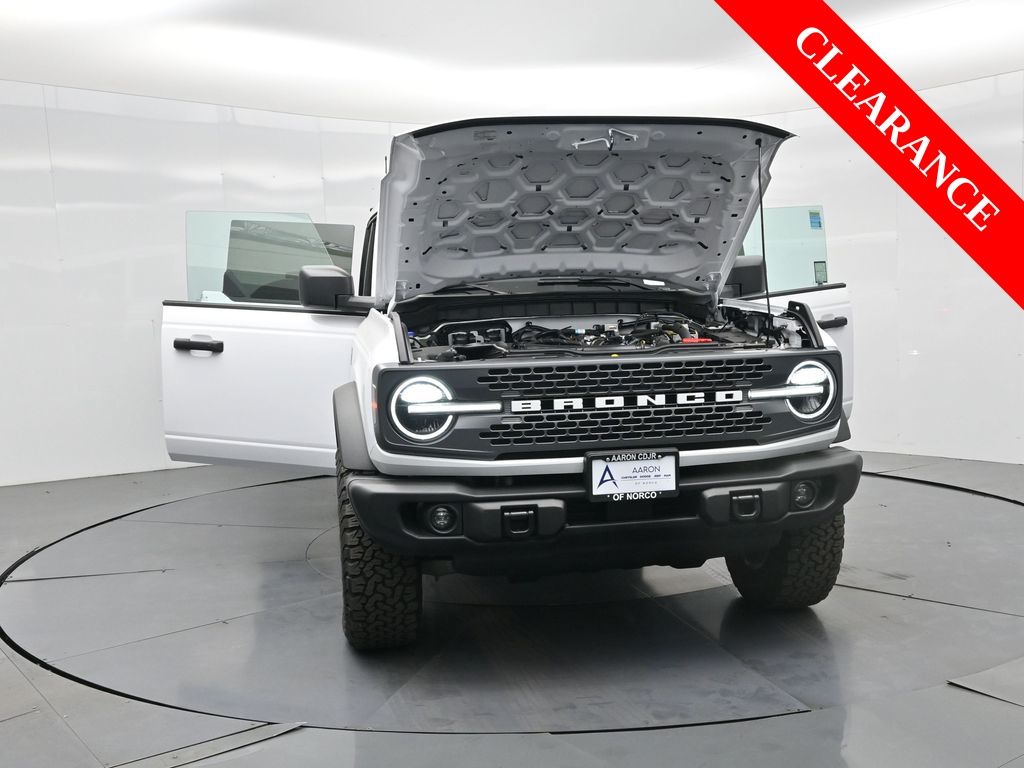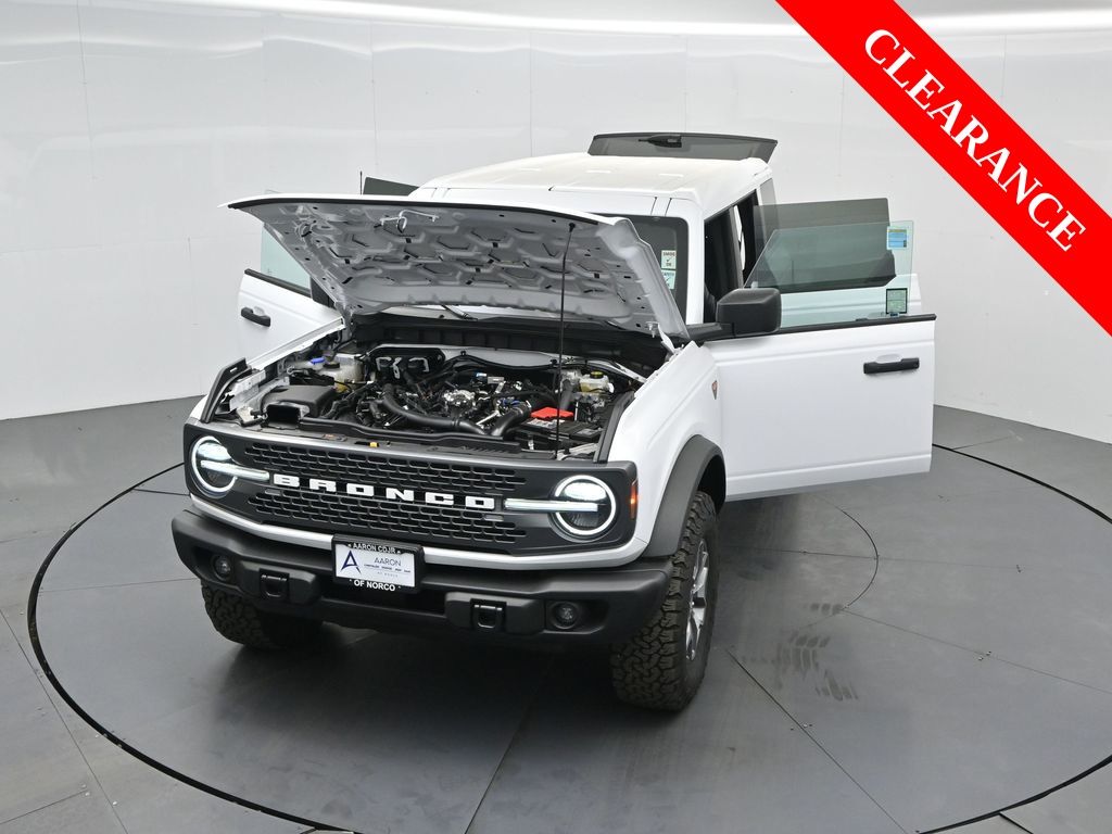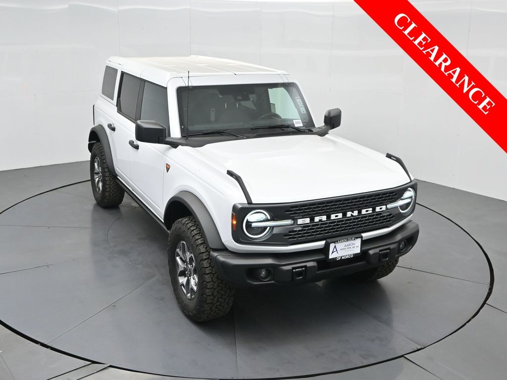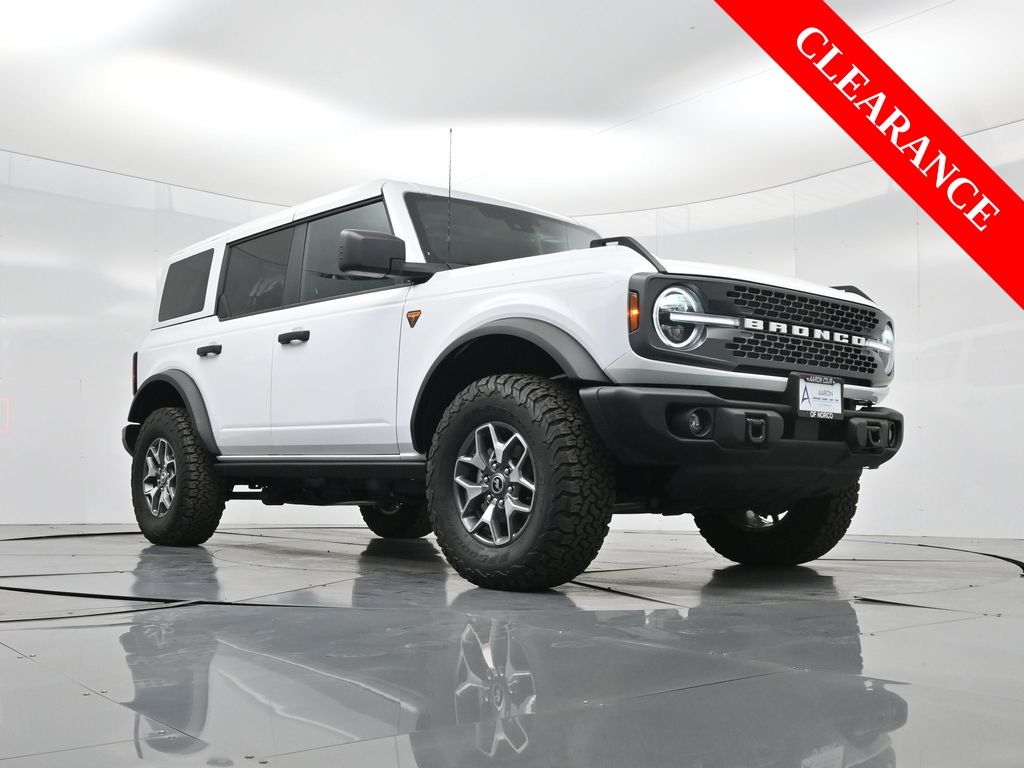 2025 Ford Bronco Badlands 4-Door 4x4 with Equipment Group 332A, advanced off-road hardware, 2.7L EcoBoost V6 power, 1-Owner CARFAX, and just under 13,000 miles.This Bronco adds removable doors/roof, steel bumpers, front stabilizer bar disconnect, front/rear locking differentials, 12-inch touchscreen, and premium Oxford White paint over black leather-trim vinyl. MPG rated at 17 city / 18 highway. Para la version en espanol, vea abajo.Built for demanding terrain, it delivers trail-ready performance with its 4x4 system, G.O.A.T. Modes, heavy-duty suspension, and advanced off-road assist features, while smart tech like SYNC 4, Co-Pilot360 safety, and a roomy interior make it practical for daily driving or weekend adventures.Renowned for its reliability and performance in its segment.We prioritize transparency, quality, and customer confidence with thorough inspections, easy financing options, and knowledgeable staff ready to support every step. Our no-pressure environment and market-based guidance ensure a straightforward and rewarding experience.Ready to see this vehicle up close? Contact us today to schedule a no-obligation test drive or virtual tour, and let's discuss how we can tailor financing to fit your needs. Our team is dedicated to addressing any concerns and guiding you every step of the way.2025 Ford Bronco Badlands 4-Door 4x4 con Equipment Group 332A, capacidades avanzadas todoterreno, motor EcoBoost V6 2.7L, CARFAX de 1 dueno y con poco menos de 13,000 millas.Este Bronco anade puertas y techo removibles, defensas de acero, desconexion de la barra estabilizadora, diferenciales bloqueables adelante y atras, pantalla tactil de 12 pulgadas y pintura Oxford White con asientos de vinil tipo piel en negro. MPG de 17 ciudad / 18 carretera.Disenado para uso extremo, ofrece desempeno listo para los senderos con su sistema 4x4, modos G.O.A.T., suspension robusta y asistencias todoterreno, mientras su tecnologia SYNC 4, seguridad Co-Pilot360 y cabina amplia lo hacen comodo para el dia a dia o aventuras de fin de semana.Reconocido por su buena confiabilidad y desempeno dentro de su segmento.Nos enfocamos en transparencia, calidad y confianza con inspecciones completas, opciones de financiamiento accesibles y un equipo experto listo para ayudarte. Sin presion y con orientacion basada en el mercado, buscamos que tu experiencia sea sencilla y positiva.Si te interesa, contactanos para mas fotos, un video detallado o para agendar una cita en la agencia. Estamos comprometidos a hacer el proceso facil, con asesoria experta en valuacion de tu intercambio y ofertas competitivas para tu tranquilidad.