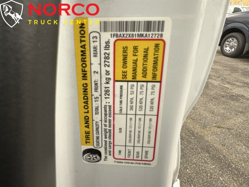 INSTALLED FEATURES: Front air conditioning, Front air conditioning zones: single, Rear air conditioning, Rear air conditioning zones: single, Airbag deactivation: occupant sensing passenger, Front airbags: dual, Side airbags: front, Side curtain airbags: fourth row / front / rear / third row, Antenna type: mast, Auxiliary audio input: Bluetooth / USB, Radio: AM/FM, Total speakers: 8, ABS: 4-wheel, Braking assist, Cornering brake control, Electronic brakeforce distribution, Electronic parking brake: auto off, Emergency braking preparation, Front brake type: ventilated disc, Power brakes, Rear brake type: ventilated disc, Armrests: dual front / rear folding, Floor mat material: carpet, Floor material: carpet, Floor mats: front, Shift knob trim: urethane, Steering wheel trim: urethane, Assist handle: front / rear, Capless fuel filler system, Cargo area light, Center console: front console with storage, Cruise control, Cupholders: front, Multi-function remote: keyless entry / panic alarm / trunk release, One-touch windows: 1, Power outlet(s): 12V front / USB fourth row / USB front / USB rear / USB third row, Power steering: variable/speed-proportional, Reading lights: front / rear, Rearview mirror: manual day/night, Steering wheel: tilt and telescopic, Steering wheel mounted controls: audio / cruise control / multi-function / phone, Storage: door pockets, Vanity mirrors: dual illuminating, Body side moldings: black, Door handle color: black, Front bumper color: body-color, Grille color: black / chrome surround, Headlight bezel color: chrome, Mirror color: black, Rear bumper color: black, Rear trunk/liftgate: barn, Side door type: passenger-side manual sliding, Window trim: black, Infotainment: SYNC, Infotainment screen size: 4 in., Clock, Digital odometer, Gauge: tachometer, Trip odometer, Warnings and reminders: coolant temperature warning / low fuel level / low oil pressure, Front fog lights, Headlights: auto delay off / auto high beam dimmer / auto on/off / halogen / wiper activated, Side mirror adjustments: power / power folding, Side mirrors: heated / integrated turn signals, Alternator: 250 amps, Auxiliary transmission fluid cooler, Battery: maintenance-free, Battery rating: 610 CCA, OEM roof height: high, Automatic emergency braking: front / front pedestrian, Blind spot safety: sensor/alert / trailer coverage, Camera system: rearview, Child safety door locks, Child seat anchors: LATCH system, Cross traffic alert: rear, Driver attention alert system, Impact sensor: door unlock / post-collision safety system, Lane deviation sensors, Parking sensors: rear, Pre-collision warning system: audible warning / pedestrian detection / visual warning, Rearview monitor: in dash, Fourth row seatbelts: 3-point, Front seatbelts: 3-point, Rear seatbelts: 3-point, Seatbelt warning sensor: front, Third row seatbelts: 3-point, Driver seat manual adjustments: 2 / lumbar / reclining, Fourth row headrests: 4, Fourth row seat type: 50-50 split bench, Front headrests: 2 / adjustable, Front seat type: bucket, Passenger seat manual adjustments: 2 / reclining, Rear headrests: 3, Rear seat manual adjustments: reclining, Rear seat type: bench, Third row headrests: 3, Third row seat type: split-bench, Upholstery: cloth, Anti-theft system: vehicle immobilizer, Power door locks: auto-locking, Crosswind stabilization, Hill holder control, Roll stability control, Stability control, Traction control, Trailer stability control, Front shock type: gas, Front spring type: coil, Front stabilizer bar, Front struts: MacPherson, Front suspension classification: independent, Front suspension type: lower control arms, Rear shock type: gas, Rear spring type: leaf, Rear suspension classification: solid live axle, Rear suspension type: multi-leaf, Smart device app compatibility: FordPass Connect, Smart device app function: engine start / lock operation / maintenance status / vehicle location, Wi-Fi: hotspot, Wireless data link: Bluetooth, Spare tire mount location: underbody, Spare tire size: full-size, Spare wheel type: steel, Tire Pressure Monitoring System, Wheel covers: full, Wheels: steel, Front wipers: rain sensing / variable intermittent, Liftgate window: fixed, Power windows: safety reverse, Solar-tinted glass, Window defogger: rear