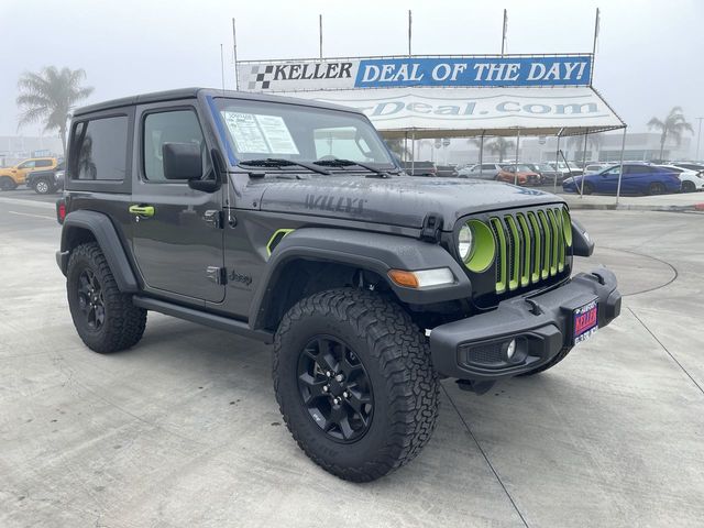 3.6L V6 24V VVT 4-Wheel Drive Swing Gate Decal, 97 MPH Vehicle Max Speed Calibration, Anti-Spin Differential Rear Axle, Black 3-Piece Hard Top, Black Grille, Black Trail Rated Badge, Deep Tint Sunscreen Windows, Freedom Panel Storage Bag, Matte Black Jeep Badge, Mold In Color Bumper w/Gloss Black, MOPAR All-Weather Floor Mats, No Soft Top, Quick Order Package 25K Willys Sport, Rear Window Defroster, Rear Window Wiper/Washer, Wheels: 17" x 7.5" Moab Black Aluminum, Willys, Willys Hood Decal, Wrangler Decal, 110 mph Vehicle Max Speed Calibration, 3.45 Rear Axle Ratio, 4-Wheel Disc Brakes, 8 Speakers, ABS brakes, Air Conditioning, AM/FM radio, Brake assist, Cloth Low-Back Bucket Seats, Compass, Delay-off headlights, Driver door bin, Driver vanity mirror, Dual front impact airbags, Dual front side impact airbags, Electronic Stability Control, For More Info Call 800-643-2112, Front anti-roll bar, Front Bucket Seats, Front Center Armrest w/Storage, Front fog lights, Front reading lights, Integrated roll-over protection, Low tire pressure warning, Manuf Statement of Origin, MOPAR All-Weather Floor Mats (DISC), Normal Duty Suspension, Occupant sensing airbag, Outside temperature display, ParkView Rear Back-Up Camera, Passenger door bin, Passenger vanity mirror, Power steering, R1234YF A/C Refrigerant, Radio data system, Radio: Uconnect 3 w/5" Display, Rear anti-roll bar, Rear reading lights, SiriusXM Radio Service, SiriusXM Satellite Radio, Speed control, Steering wheel mounted audio controls, Tachometer, Telescoping steering wheel, Tilt steering wheel, Traction control, Trip computer, Variably intermittent wipers, Wheels: 17" x 7.5" Black Steel Styled, 4-Wheel Drive Swing Gate Decal, 97 MPH Vehicle Max Speed Calibration, Anti-Spin Differential Rear Axle, Black 3-Piece Hard Top, Black Grille, Black Trail Rated Badge, Deep Tint Sunscreen Windows, Freedom Panel Storage Bag, Matte Black Jeep Badge, Mold In Color Bumper w/Gloss Black, MOPAR All-Weather Floor Mats, No Soft Top, Quick Order Package 25K Willys Sport, Rear Window Defroster, Rear Window Wiper/Washer, Wheels: 17" x 7.5" Moab Black Aluminum, Willys, Willys Hood Decal, Wrangler Decal.www.kellerfordhanford.com Excellent selection of Vehicles, Financing options, serving Hanford, Lemoore, Armona, Visalia, Tulare, Fresno, Goshen, Kings County, Tulare County, Fresno County, San Joaquin County, Bakersfield, Kern County. Price excludes government fees and taxes, dealer documentation fee of $85, and any emission testing charge.