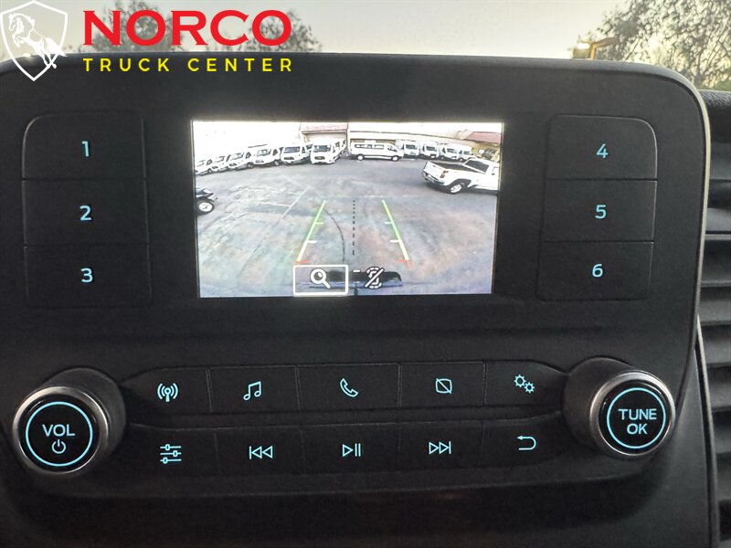 INSTALLED FEATURES: Front air conditioning, Front air conditioning zones: single, Airbag deactivation: passenger switch, Front airbags: dual, Side airbags: front, Side curtain airbags: front, Antenna type: mast, Auxiliary audio input: Bluetooth / USB, Radio: AM/FM, Total speakers: 4, ABS: 4-wheel, Braking assist, Cornering brake control, Electronic brakeforce distribution, Emergency braking preparation, Front brake type: ventilated disc, Power brakes, Rear brake type: ventilated disc, Armrests: dual front, Floor material: rubber/vinyl, Shift knob trim: urethane, Steering wheel trim: urethane, Assist handle: front / rear, Capless fuel filler system, Cargo area light, Center console: front console with storage, Cupholders: front, Multi-function remote: keyless entry / panic alarm / trunk release, Overhead console: front, Power outlet(s): 12V front, Power steering: variable/speed-proportional, Reading lights: front, Steering wheel: tilt and telescopic, Steering wheel mounted controls: audio / multi-function / phone, Storage: cargo tie-down anchors and hooks / door pockets, Sun visors, Body side moldings: black, Door handle color: black, Front bumper color: black, Grille color: black / black surround, Mirror color: black, Rear bumper color: black, Rear trunk/liftgate: barn, Side door type: passenger-side manual sliding, Window trim: black, Infotainment screen size: 4 in., Clock, Digital odometer, Gauge: tachometer, Trip odometer, Warnings and reminders: low fuel level, Headlights: auto high beam dimmer / halogen / wiper activated, Side mirror adjustments: manual folding / power, Alternator: 250 amps, Auxiliary transmission fluid cooler, Battery: maintenance-free, Battery rating: 610 CCA, OEM roof height: high, Automatic emergency braking: front, Camera system: rearview, Driver attention alert system, Impact sensor: door unlock / post-collision safety system, Lane deviation sensors, Pre-collision warning system: audible warning / visual warning, Rearview monitor: in dash, Front seatbelts: 3-point, Driver seat manual adjustments: 2 / reclining, Front headrests: 2 / adjustable, Front seat type: bucket, Passenger seat manual adjustments: 2 / reclining, Upholstery: vinyl, Anti-theft system: vehicle immobilizer, Power door locks: auto-locking, Crosswind stabilization, Hill holder control, Roll stability control, Stability control, Traction control, Trailer stability control, Front shock type: gas, Front spring type: coil, Front stabilizer bar, Front struts: MacPherson, Front suspension classification: independent, Front suspension type: lower control arms, Rear shock type: gas, Rear spring type: leaf, Rear suspension classification: solid live axle, Rear suspension type: multi-leaf, Smart device app compatibility: FordPass Connect, Smart device app function: engine start / lock operation / maintenance status / vehicle location, Wi-Fi: hotspot, Wireless data link: Bluetooth, Spare tire mount location: underbody, Spare tire size: full-size, Spare wheel type: steel, Tire Pressure Monitoring System, Wheel covers: partial, Wheels: painted steel, Front wipers: rain sensing / variable intermittent, Power windows, Solar-tinted glass