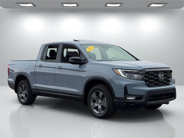CARFAX One-Owner.Priced below KBB Fair Purchase Price!Grey 2025 Honda Ridgeline TrailSport AWD 9-Speed Automatic 3.5L V6 SOHC i-VTEC 24V Leather.If you don't drive here, you can't save here!Price may not include recon fee. Leather, 4-Wheel Disc Brakes, 4.33 Axle Ratio, 7 Speakers, ABS brakes, Air Conditioning, Alloy wheels, AM/FM radio: SiriusXM, Auto-dimming Rear-View mirror, Automatic temperature control, Blind Spot Information (BSI) System warning, Bluetooth® Hands-Free Link, Brake assist, Bumpers: body-color, Compass, Delay-off headlights, Driver door bin, Driver vanity mirror, Driver's Seat Mounted Armrest, Dual front impact airbags, Dual front side impact airbags, Electronic Stability Control, Emergency communication system: HondaLink Assist, Exterior Parking Camera Rear, Four wheel independent suspension, Front anti-roll bar, Front Bucket Seats, Front dual zone A/C, Front fog lights, Front reading lights, Fully automatic headlights, Garage door transmitter: HomeLink, Heated door mirrors, Heated Front Bucket Seats, Heated front seats, Heated steering wheel, Honda Satellite-Linked Navigation System, Illuminated entry, Leather Seat Trim, Leather steering wheel, Low tire pressure warning, Memory seat, Navigation system: Honda Satellite-Linked Navigation System, Occupant sensing airbag, Outside temperature display, Overhead airbag, Overhead console, Panic alarm, Passenger door bin, Passenger seat mounted armrest, Passenger vanity mirror, Power door mirrors, Power driver seat, Power moonroof, Power passenger seat, Power steering, Power windows, Radio data system, Radio: 215-Watt Audio System w/7 Speakers, Rear air conditioning, Rear anti-roll bar, Rear reading lights, Rear seat center armrest, Rear step bumper, Rear window defroster, Remote keyless entry, Security system, SiriusXM, Speed control, Speed-sensing steering, Split folding rear seat, Steering wheel mounted audio controls, Tachometer, Telescoping steering wheel, Tilt steering wheel, Traction control, Trip computer, Turn signal indicator mirrors, Variably intermittent wipers, and Wheels: 18" TrailSport Pewter Gray Alloy.