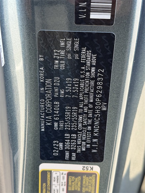 CARFAX One-Owner.Priced below KBB Fair Purchase Price!19/26 City/Highway MPGAstra Blue 2023 Kia Carnival EX FWD 8-Speed Automatic V6If you don't drive here, you can't save here!Price may not include recon fee. 3.51 Axle Ratio, 3rd row seats: split-bench, 4-Wheel Disc Brakes, 8 Speakers, ABS brakes, Air Conditioning, Alloy wheels, AM/FM radio: SiriusXM, Apple CarPlay & Android Auto, Artificial Leather Seat Trim, Auto High-beam Headlights, Automatic temperature control, Brake assist, Bumpers: body-color, Cargo Net, Cargo Tray, Carpeted Floor Mats (8-Passenger), Compass, Delay-off headlights, Driver door bin, Driver vanity mirror, Dual front impact airbags, Dual front side impact airbags, Electronic Stability Control, Emergency communication system, Four wheel independent suspension, Front anti-roll bar, Front Bucket Seats, Front Center Armrest, Front dual zone A/C, Front reading lights, Fully automatic headlights, Heated door mirrors, Heated Front Bucket Seats, Heated front seats, Illuminated entry, Knee airbag, Leather Shift Knob, Leather steering wheel, Low tire pressure warning, Navigation System, Occupant sensing airbag, Outside temperature display, Overhead airbag, Overhead console, Panic alarm, Passenger door bin, Passenger vanity mirror, Power door mirrors, Power driver seat, Power Liftgate, Power steering, Power windows, Radio: AM/FM/HD Audio System, Rear air conditioning, Rear anti-roll bar, Rear reading lights, Rear window defroster, Rear window wiper, Reclining 3rd row seat, Remote keyless entry, Security system, Speed control, Speed-sensing steering, Split folding rear seat, Spoiler, Steering wheel mounted audio controls, Tachometer, Telescoping steering wheel, Tilt steering wheel, Traction control, Trip computer, Turn signal indicator mirrors, Variably intermittent wipers, Wheel Locks, and Wheels: 7.5J x 19" Machine-Finished Alloy.