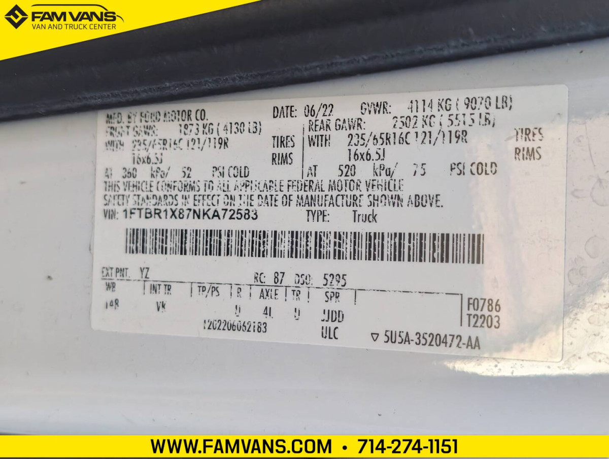 Here at FAM Vans we have over 350 vans and trucks in stock at any given time, plus we get fresh inventory every month. We can modify any vehicle to fit your needs or find the right one that fits your budget! Full Parts and Service departments. -LWB / 148-in WB -GVWR: 9,070 LBS -Includes backup camera -Dimensions: 235.5 L x 110.1 H