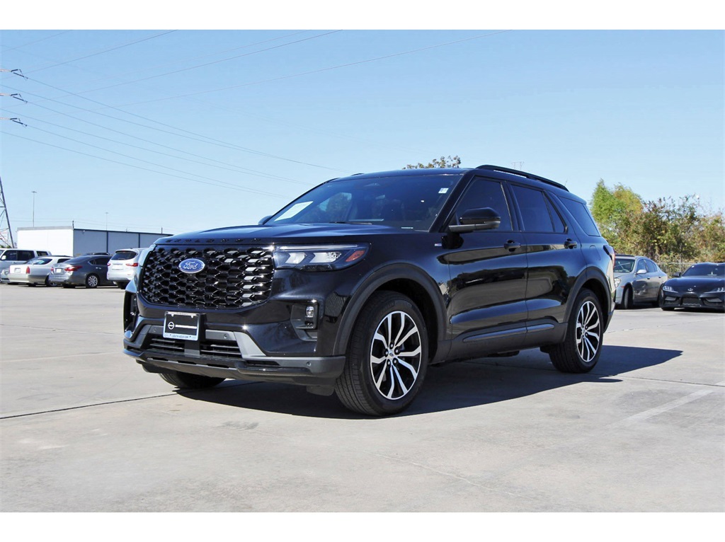 **2025 Ford Explorer ST-LineLow Miles | Sport Styling | Modern Tech**South Houston Nissan is proud to present this 2025 Ford Explorer ST-Line, a sporty and refined SUV offering bold styling, advanced technology, and exceptionally low mileage.Finished in Black Metallic with an Onyx interior, this Explorer delivers the aggressive ST-Line appearance paired with everyday comfort and efficiency.Performance & Driving Experience2.3L EcoBoost turbocharged 4-cylinder engine10-speed automatic transmissionRear-wheel driveSmooth, responsive acceleration with confident handlingBalanced ride quality ideal for daily driving or road tripsST-Line Design & InteriorSport-inspired ST-Line exterior stylingBlacked-out trim and aggressive stancePower driver seatDual-zone automatic climate controlLeather-wrapped steering wheelPush-button start with keyless entrySpacious seating for passengers and cargoTechnology & SafetyTouchscreen infotainment systemApple CarPlay and Android Auto compatibilityBackup cameraBlind spot monitoringLane keeping assistForward collision warning with automatic brakingSteering wheel-mounted controlsMileage & ValueWith just 1,307 miles, this Explorer ST-Line offers near-new condition without the cost of buying brand new. It delivers modern features, sharp styling, and excellent value compared to new inventory.Why Choose This Explorer ST-LineIf you’re looking for a sporty SUV with modern technology, low mileage, and strong road presence, this 2025 Explorer ST-Line is a smart alternative to buying new.DisclaimerOnline price excludes sales tax (varies by state), tag, title, license, and dealer-added options. Must finance with South Houston Nissan to qualify for online pricing. First come, first served. No holds.