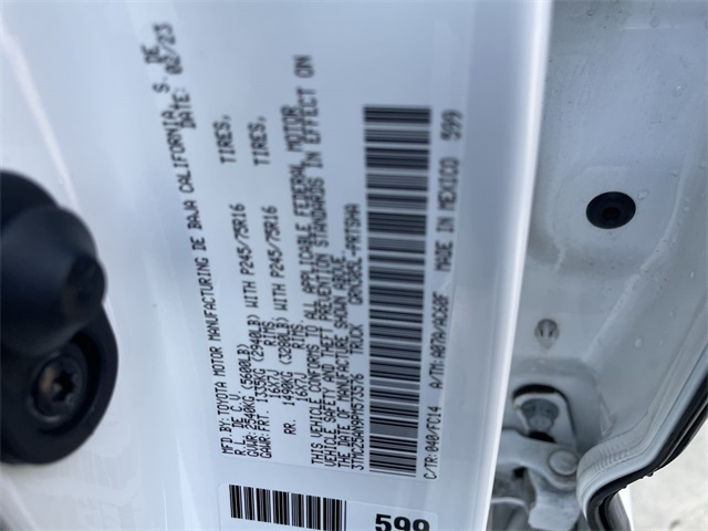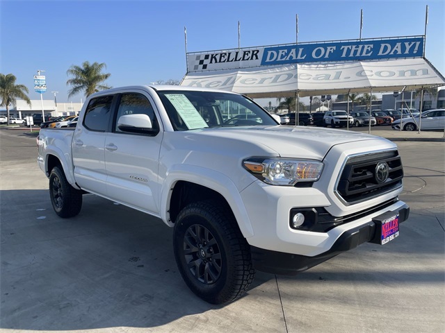 ABS brakes, Auto High-beam Headlights, Axle Ratio: 3.91, Black Headlamp Bezel, Body Color Overfenders, Bumpers: body-color, Daytime Running Lamps, Electronic Stability Control, Front Fog & Driving Lamp, Front fog lights, Heated door mirrors, Panic alarm, Power Sliding Rear Window w/Privacy Glass, Steering wheel mounted audio controls, Wheels: 16" Dark Gray Alloy. Ice Cap 3.5L V6 PDI DOHC 24V LEV3-ULEV70 278hp 2023 Toyota Tacoma 4D Double Cab 4WD SR5 V6www.kellerdeal.com Excellent selection of Used Vehicles, Financing options, serving Hanford, Lemoore, Armona, Visalia, Tulare, Fresno, Goshen, Kings County, Tulare County, Fresno County, San Joaquin County, Bakersfield, Kern County. Price excludes government fees and taxes, dealer documentation fee of $85, and any emission testing charge.
