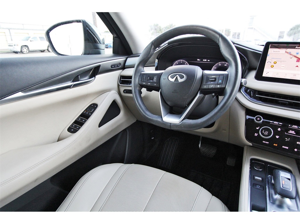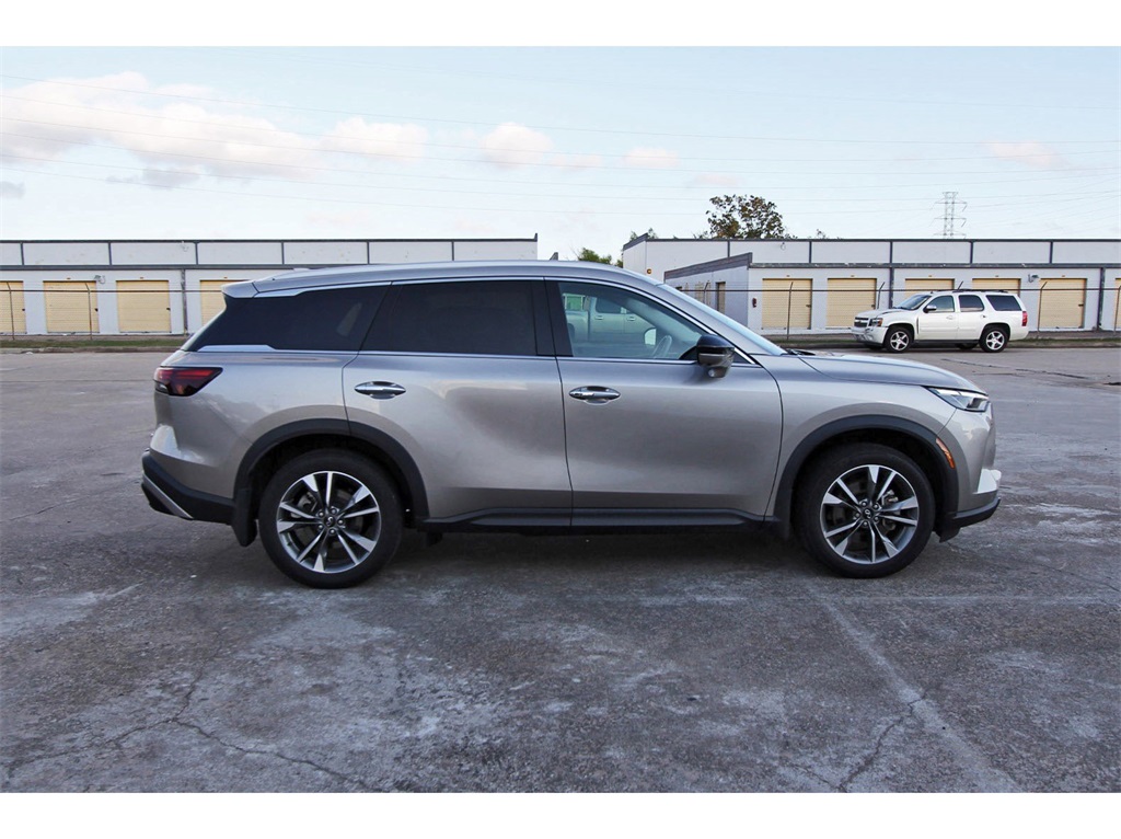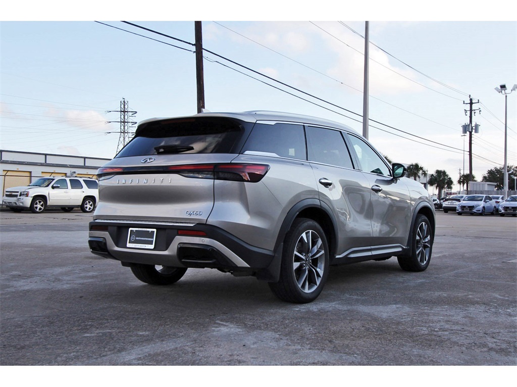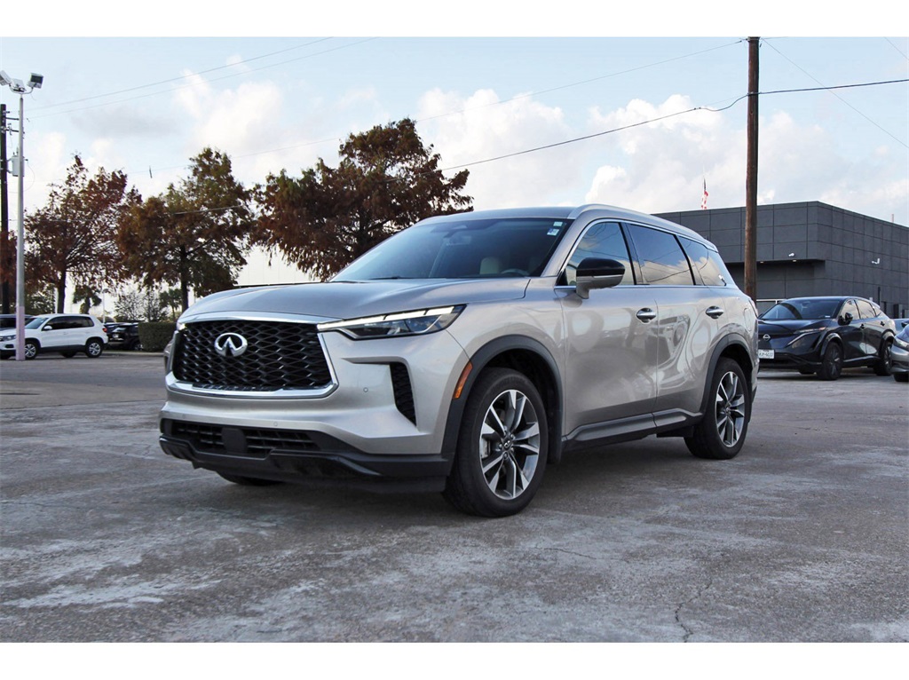 Luxury Seating and Three-Row Comfort at a Smart Price2023 INFINITI QX60 LUXE | FWD | 3-Row SUVRefined design meets everyday practicality in this 2023 INFINITI QX60 LUXE. With a smooth V6 engine, upscale interior, and spacious three-row layout, this QX60 delivers premium comfort and versatility for families and professionals alike—priced to reflect real market value.Performance & Driving ExperiencePowered by a responsive 3.5L V6 engine paired with a 9-speed automatic transmission, this QX60 delivers smooth acceleration and confident highway cruising. The front-wheel-drive configuration provides a comfortable ride and efficient performance for daily driving and long trips.Interior & ComfortThe LUXE trim offers a refined cabin with premium materials and thoughtful design. The Sandstone interior pairs beautifully with the Warm Titanium exterior, creating a bright and inviting space with seating for up to seven and flexible cargo room across all three rows.Condition & ValueWith 56,467 miles, this QX60 has been driven more than average and is priced accordingly to deliver exceptional value. Compared to similar QX60 LUXE models, it offers luxury features and three-row capability without the higher price typically associated with lower-mileage examples.Why This INFINITI QX60The QX60 is known for comfort, quiet ride quality, and family-friendly design. It’s an excellent option for buyers seeking a premium SUV with third-row seating, smooth performance, and strong value in a competitive luxury segment.Available now.Contact us today to schedule a test drive or request additional details.Disclaimer:Online price excludes tax, title, license, and dealer-added options. Financing through South Houston Nissan required. First come, first served. No holds.