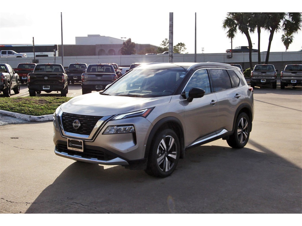 Top-Trim Rogue Luxury with Low Miles and Advanced Technology2023 Nissan Rogue Platinum | FWD | TurbochargedThis 2023 Nissan Rogue Platinum represents the highest trim level available, delivering premium materials, advanced driver assistance technology, and modern efficiency—all paired with well below-average mileage. Designed for drivers who want comfort, safety, and innovation in a refined SUV, this Rogue Platinum stands out in its class.Performance & EfficiencyPowered by a 1.5L turbocharged engine producing 201 horsepower and paired with a CVT with Xtronic, the Rogue offers smooth acceleration, confident highway driving, and excellent fuel efficiency. The front-wheel-drive setup provides a comfortable, composed ride for everyday use.Platinum Interior & Premium ComfortThe Platinum trim elevates the Rogue with upscale finishes and advanced comfort features. Finished in Charcoal leather with a Champagne Silver Metallic / Super Black exterior, this Rogue delivers a refined and modern appearance inside and out.Premium highlights include:Heated leather seatingHeated steering wheelPower driver seatDual-zone automatic climate controlPanoramic-style interior refinement and soft-touch materialsSpacious cabin with flexible cargo spaceTechnology & SafetyEquipped with advanced technology designed to enhance confidence and convenience:Large touchscreen infotainment systemNissanConnect with Apple CarPlay and Android AutoNavigation systemSurround-view / backup camera system with parking assistBlind spot monitoringAdaptive cruise controlLane departure warningRear parking sensorsMileage & ValueWith just 29,294 miles, this Rogue Platinum has been driven significantly less than average for its model year. It delivers top-trim luxury, advanced safety features, and everyday practicality at a price well below the cost of a new Platinum.Why Choose This Nissan Rogue PlatinumThe Rogue Platinum is ideal for buyers who want maximum comfort, safety, and technology without stepping into a luxury-brand price point. This example offers the best of the Rogue lineup with strong value and low miles.Available now.Contact South Houston Nissan today to schedule a test drive or request additional details.Disclaimer:Online price excludes tax, title, license, and dealer-added options. Financing through South Houston Nissan required to qualify for online pricing. First come, first served. No holds.