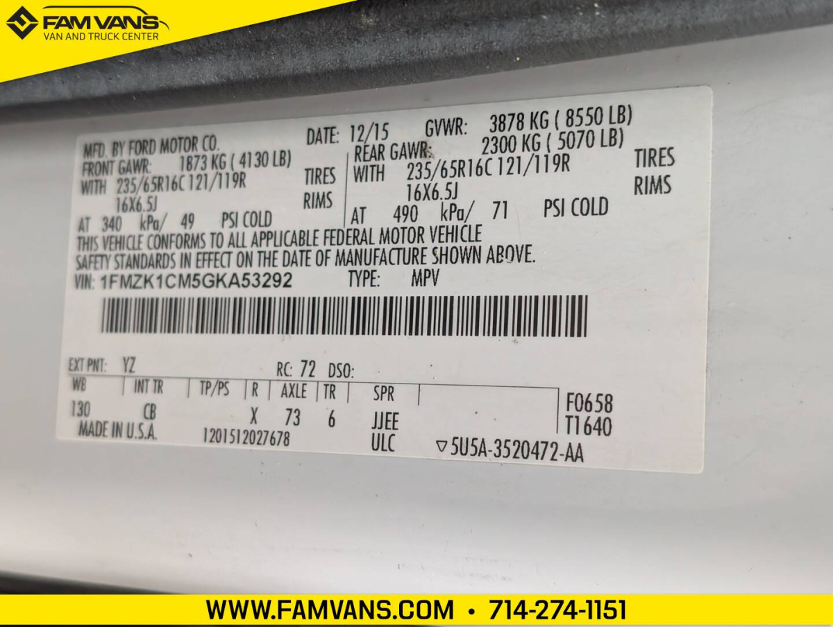 Here at FAM Vans we have over 350 vans and trucks in stock at any given time, plus we get fresh inventory every month. We can modify any vehicle to fit your needs or find the right one that fits your budget! Full Parts and Service departments. -130-in WB -GVWR: 8,550 LBS -Dimensions: 217.8 L x 98.7 H -Wheelchair lift in rear