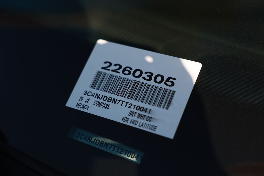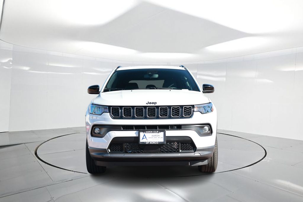 Discover the 2026 Jeep Compass Latitude, a versatile and capable SUV that blends style, performance, and cutting-edge technology. With its sleek white/off-white exterior and a host of premium features, this Compass Latitude is the perfect companion for your adventures.Highlighted by the Altitude Special Edition package, this Compass boasts a striking appearance with black day light opening moldings, gloss black surround and neutral gray rings, and neutral gray exterior badging. Step inside and you'll be greeted by a 10.1" touchscreen display, piano black interior accents, and sliding sun visors with illuminated mirrors. The 18" gloss black painted aluminum wheels add a touch of sophistication to the overall design.• Quick Order Package 29N Altitude• Altitude Special Edition• Black Day Light Opening Moldings• Gloss Black Surround/Neutral Gray Rings• Neutral Gray Exterior Badging• 10.1" Touchscreen Display• Piano Black Interior Accents• Sliding Sun Visors with Illuminated Mirrors• Wheels: 18" x 7" Gloss Black Painted AluminumPowered by a 2.0L I4 DOHC engine paired with an 8-speed automatic transmission and 4-wheel drive, the 2026 Jeep Compass Latitude delivers an exceptional driving experience. With an EPA-estimated 23 city/31 highway mpg, this SUV offers impressive fuel efficiency without compromising its off-road capabilities.Packed with a wealth of advanced features, the Compass Latitude is designed to keep you connected and protected. Enjoy the convenience of Bluetooth hands-free phone and audio, a premium audio system with SiriusXM satellite radio, and a ParkView rear back-up camera. Safety is also a top priority, with features like electronic stability control, four-wheel disc brakes, and a suite of airbags to provide you and your passengers with peace of mind.Whether you're navigating the city streets or tackling the great outdoors, the 2026 Jeep Compass Latitude is the perfect blend of style, capability, and technology. Experience the difference for yourself by scheduling a test drive at our dealership today. We're confident you'll be impressed by the exceptional value and performance this Compass Latitude has to offer.