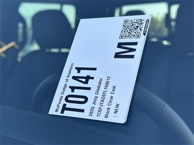 black clearcoat 2026 Jeep Gladiator 4WD 8-Speed Automatic 3.6L V6 24V VVT INTERIOR & EXTERIOR PROFESSIONALLY DETAILED FOR DELIVERY, MCPEEK CHRYSLER DODGE JEEP RAM FAMILY OWNED AND OPERATED SINCE 1961 !!!!!.All prices are subject to change without notice. All vehicles subject to prior sale. Advertised price does not include Dealer Installed Accessories or Commercial Bed/Body Upfits. Please contact dealer to receive the most up to date pricing information and complete details.