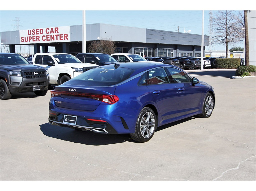 Sporty Style and Turbo Efficiency at a Smart Price2023 Kia K5 EX | FWD | Turbo SedanThis 2023 Kia K5 EX combines modern design, turbocharged performance, and everyday comfort in a sleek midsize sedan. With its bold styling and well-equipped EX trim, the K5 is an excellent option for commuters and value-focused buyers looking for a dependable and efficient sedan.Performance & EfficiencyPowered by a 1.6L turbocharged 4-cylinder engine paired with an 8-speed automatic transmission, the K5 delivers smooth acceleration and confident highway performance. The front-wheel-drive setup offers balanced handling and strong fuel efficiency for daily driving.Interior & TechnologyThe EX trim features a clean, modern interior with intuitive controls and premium touches throughout. The black interior complements the Sapphire Blue exterior, creating a refined and sporty cabin with ample space for passengers and cargo.Condition & ValueWith 42,358 miles, this K5 has been driven within normal expectations and is priced competitively against similar 2023 Kia K5 EX models in the market. It offers modern features, turbo performance, and strong value without the new-car price.Why This Kia K5The Kia K5 is known for its reliability, efficiency, and stylish design. Whether for commuting or everyday driving, this K5 EX delivers comfort, performance, and value in a competitive midsize sedan segment.In transit.Vehicle is currently on the way. Contact us for arrival timing, pricing details, or to be notified when it becomes available.Disclaimer:Online price excludes tax, title, license, and dealer-added options. Financing through South Houston Nissan required. First come, first served. No holds.