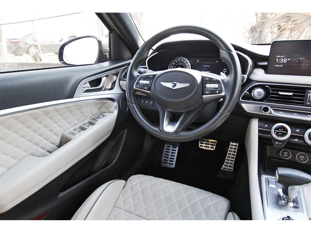 Twin-Turbo Performance Meets Modern Luxury — Genesis G70 3.3T2023 Genesis G70 3.3T RWDSouth Houston Nissan is proud to offer this 2023 Genesis G70 3.3T, a luxury sport sedan engineered to compete directly with BMW and Audi — without the premium price tag. Powered by a twin-turbocharged 3.3L V6, this G70 delivers exhilarating performance, refined handling, and a meticulously crafted interior.Performance That Separates ItUnder the hood is Genesis’ 3.3L Twin-Turbo V6, producing impressive horsepower and torque, paired with a smooth 8-speed automatic transmission with SHIFTRONIC. Rear-wheel drive provides a balanced, engaging driving experience that enthusiasts appreciate.Twin-Turbo V6 performanceSport-tuned suspensionRear-wheel drive handlingConfident highway accelerationPremium Interior & CraftsmanshipThe cabin is finished in a striking Obsidian Black and Sandstorm Gray leather interior, offering a refined, modern feel throughout.Highlights include:Leather-trimmed seatingPower-adjustable front seatsDriver-focused cockpit designPremium materials and soft-touch surfacesQuiet, well-insulated rideEvery detail reflects Genesis’ commitment to luxury and comfort.Technology & ConnectivityLarge touchscreen infotainment systemApple CarPlay and Android AutoPremium audio systemPush-button startKeyless entrySteering-wheel-mounted controlsDesigned to keep the driver connected without distraction.Safety & Driver ConfidenceRearview cameraStability and traction controlAdvanced airbag systemBrake assistTire pressure monitoringEngineered for peace of mind on every drive.Mileage & ValueWith 39,519 miles, this G70 offers luxury-sport performance at a fraction of the cost of comparable German sedans. When compared to BMW 3-Series and Audi S models, the value proposition is clear.Why Choose This Genesis G70?If you want real performance, modern luxury, and exceptional value — without paying for a badge — the Genesis G70 3.3T delivers in every category.Available now at South Houston Nissan.Contact us today to schedule your test drive.Standard DisclaimerExcludes sales tax (varies by state), title, license, and dealer-added options. Must finance with South Houston Nissan to qualify for online pricing. First come, first served. No holds.