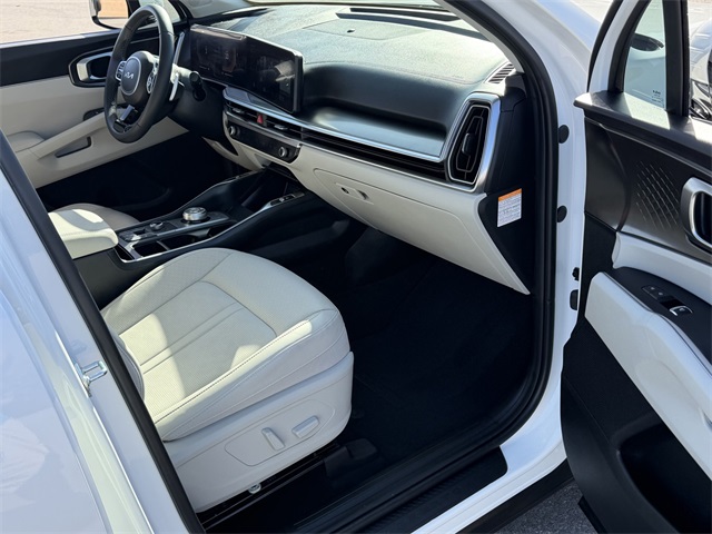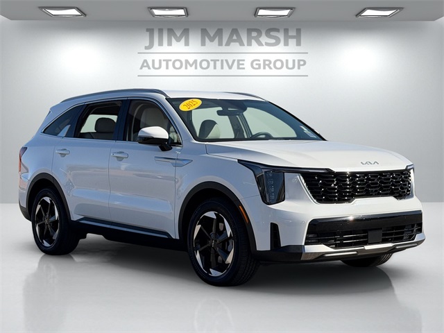 Priced below KBB Fair Purchase Price!Odometer is 5950 miles below market average!34/34 City/Highway MPGSnow White Pearl 2025 Kia Sorento Hybrid EX AWD 6-Speed Automatic 1.6L Turbo GDI 4-Cylinder 1.6L Turbo GDI 4-Cylinder.If you don't drive here, you can't save here!Price may not include recon fee. 1.6L Turbo GDI 4-Cylinder, 3rd row seats: split-bench, 4-Wheel Disc Brakes, 6 Speakers, ABS brakes, Air Conditioning, Alloy wheels, AM/FM radio: SiriusXM, Apple CarPlay & Android Auto, Auto High-beam Headlights, Automatic temperature control, Brake assist, Bumpers: body-color, Carpeted Floor Mats, Delay-off headlights, Driver door bin, Driver vanity mirror, Dual front impact airbags, Dual front side impact airbags, Electronic Stability Control, Emergency communication system: 911 Connect, Exterior Parking Camera Rear, Four wheel independent suspension, Front anti-roll bar, Front Bucket Seats, Front Center Armrest, Front dual zone A/C, Front fog lights, Front reading lights, Fully automatic headlights, Heated door mirrors, Heated Front Bucket Seats, Heated front seats, Illuminated entry, Knee airbag, Leather steering wheel, Low tire pressure warning, Navigation System, Occupant sensing airbag, Outside temperature display, Overhead airbag, Overhead console, Panic alarm, Passenger door bin, Passenger vanity mirror, Power door mirrors, Power driver seat, Power Liftgate, Power passenger seat, Power steering, Power windows, Radio data system, Radio: AM/FM/SiriusXM Audio System, Rear air conditioning, Rear anti-roll bar, Rear reading lights, Rear window defroster, Rear window wiper, Remote keyless entry, Security system, Speed control, Speed-sensing steering, Split folding rear seat, Spoiler, Steering wheel mounted audio controls, SynTex Artificial Leather Seat Trim, Tachometer, Telescoping steering wheel, Tilt steering wheel, Traction control, Trip computer, Turn signal indicator mirrors, Variably intermittent wipers, and Wheels: 19" Machine-Finished Aero Alloy.