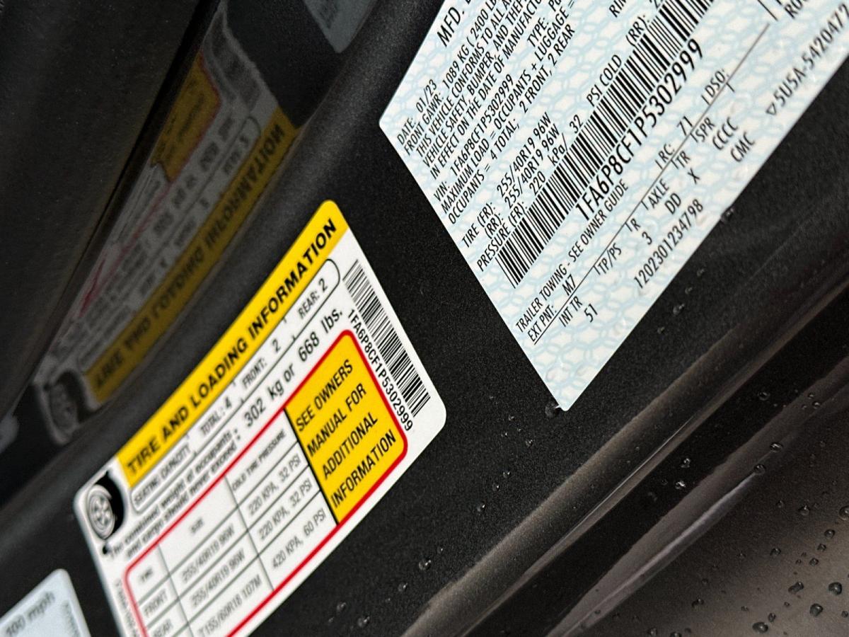 Elevate your driving experience with this exceptional 2023 Ford Mustang GT Premium. This sleek and powerful sports car is a true testament to Ford's engineering excellence, blending exhilarating performance with a refined and sophisticated interior.Boasting a stunning array of premium features, this Mustang GT Premium is equipped with the following:• Active Valve Performance Exhaust• Mustang Nite Pony Package, including 19" Ebony Black-Painted Aluminum Wheels, Black Rear Spoiler, Black Mirror Caps, and Black Badges• Radio: B&O Sound System by Bang & Olufsen with 12 speakers and a subwoofer• Security Package with Electronic-Locking Center Console and Wheel Locking Kit• Ford Safe & Smart Package with Adaptive Cruise Control and Voice-Activated NavigationStep inside this stunning Mustang, and you'll be greeted by a premium leather-trimmed interior with color-accented door trim, a wrapped center console, and a 12" LCD Digital Instrument Cluster with MyColor. The heated steering wheel and climate-controlled front seats provide unparalleled comfort, while the memory driver's seat, mirrors, and ambient lighting ensure a personalized driving experience.Powered by a thrilling 5.0L V8 Ti-VCT engine mated to a 6-speed manual transmission, this Mustang GT Premium delivers an exhilarating driving experience. With 15 city MPG and 24 highway MPG, you'll enjoy the perfect balance of power and efficiency.Safety and technology are also at the forefront of this Mustang's design. The Ford Safe & Smart Package includes advanced driver-assistance features like Adaptive Cruise Control, while the Parking Sensors and Rear Camera provide added confidence and convenience when maneuvering.Whether you're seeking the ultimate driving thrill or a sophisticated sports car that turns heads, this 2023 Ford Mustang GT Premium is the perfect choice. Experience the power, style, and premium features that make this Mustang a true standout. Visit our showroom today to take this exceptional vehicle for a test drive and discover the joy of owning a true American icon.